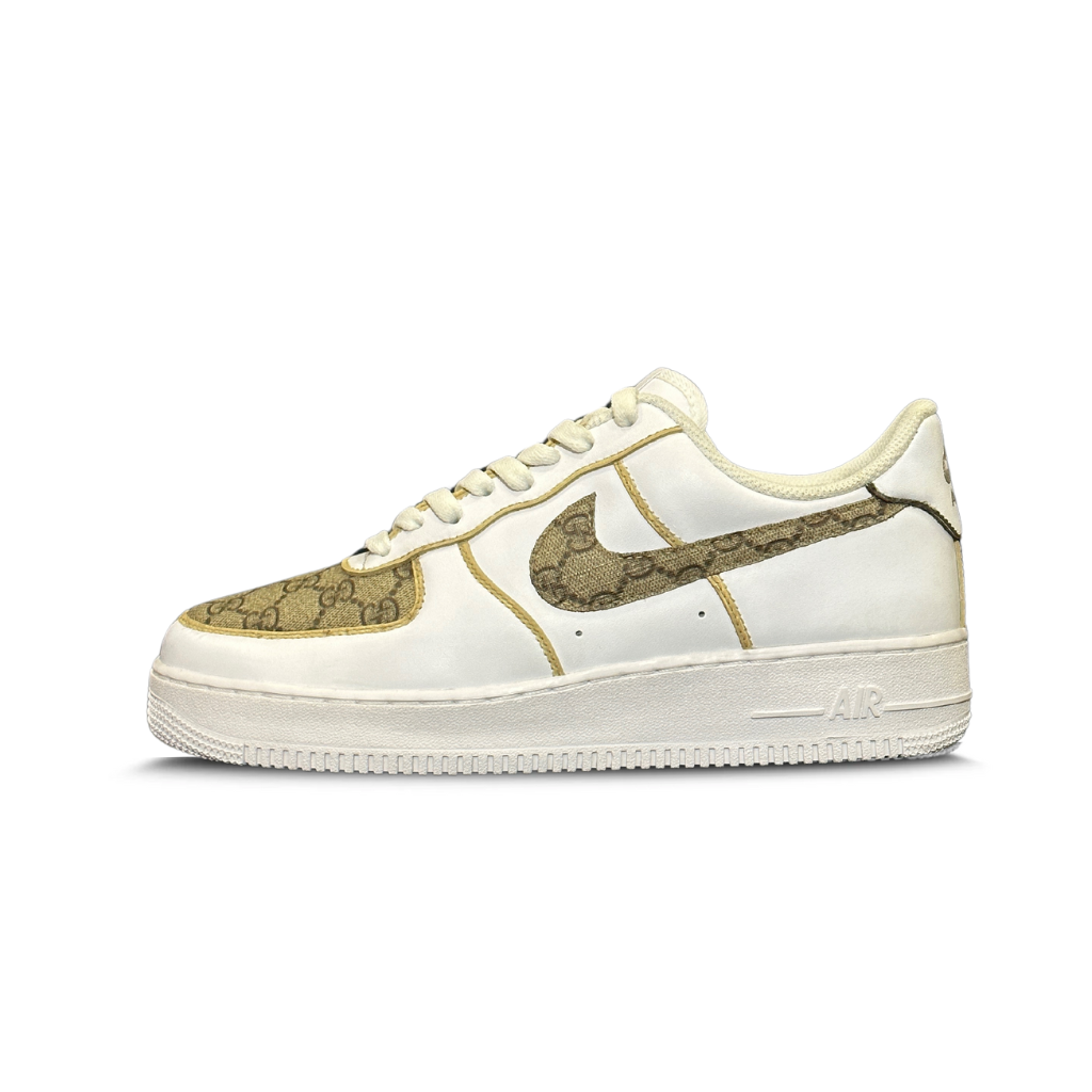 Introducing the GUCCI AF1, a limited edition Nike Air Force 1 featuring a hand-stitched Gucci pattern.