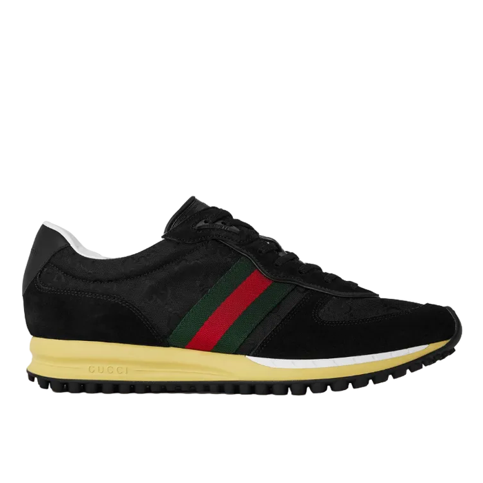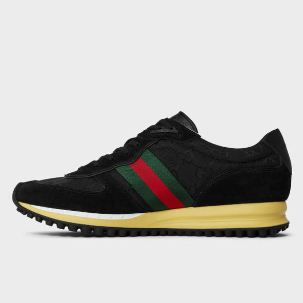 GUCCI Men's Runners 'Black' seamlessly merge performance with prestige. These athletic shoes showcase the house's iconic design language through distinctive branding and refined detailing. The cushioned footbed ensures comfort during extended wear, while the textured outsole delivers reliable traction across diverse surfaces. Built with a streamlined silhouette that captures GUCCI's signature aesthetic, these runners elevate everyday footwear with unmistakable luxury appeal. Product code: 116192