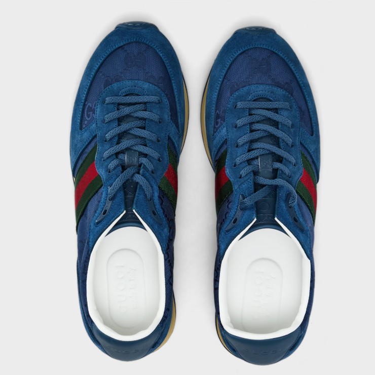 GUCCI Men's Runners 'Indigo' represent a refined intersection of heritage craftsmanship and contemporary athletic design. Rendered in a sophisticated indigo colorway, these runners showcase GUCCI's signature attention to detail with premium materials and meticulous construction. The silhouette balances performance functionality with luxury aesthetics, making them equally suited for elevated casual wear or statement-making everyday styling. Built for discerning collectors who appreciate Italian design excellence and understated sophistication in their footwear selection.