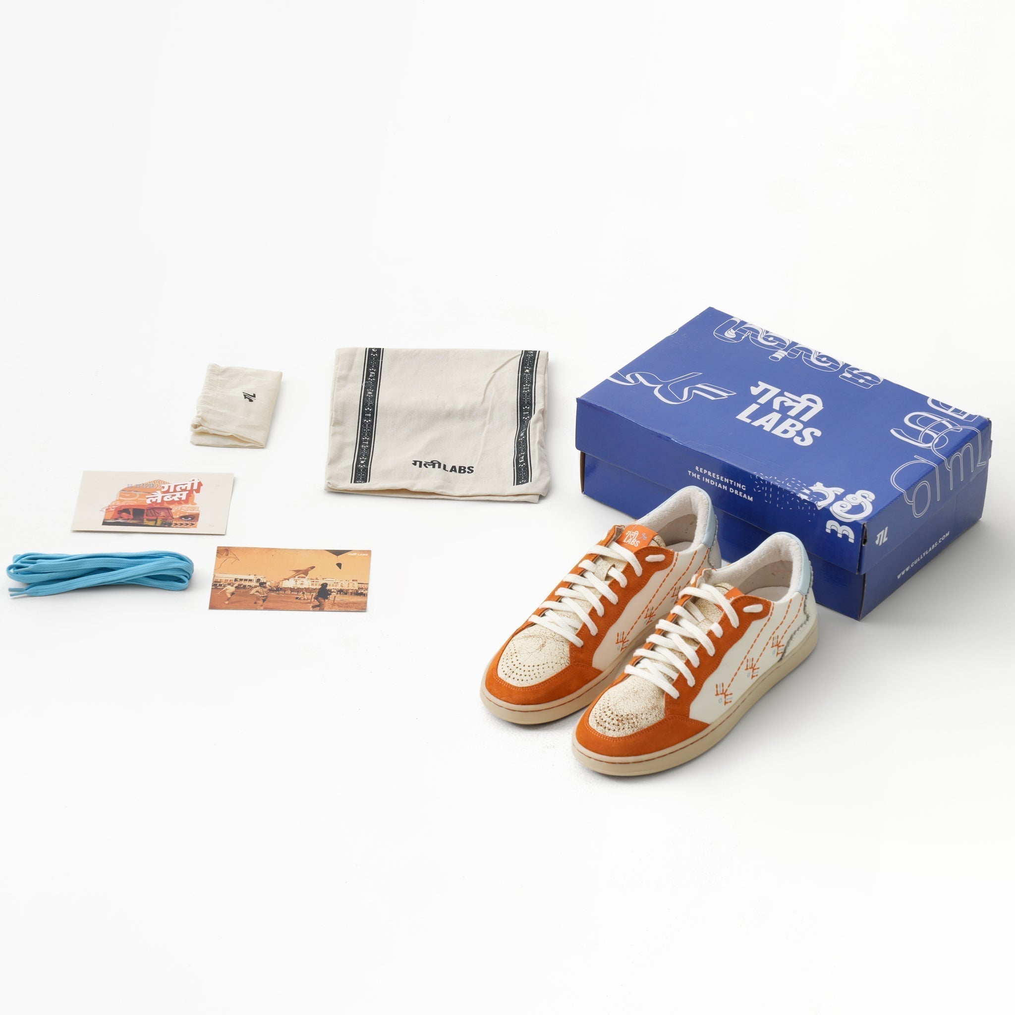 The Saaj Orange is a holiday season exclusive sneaker featuring festive patterns.