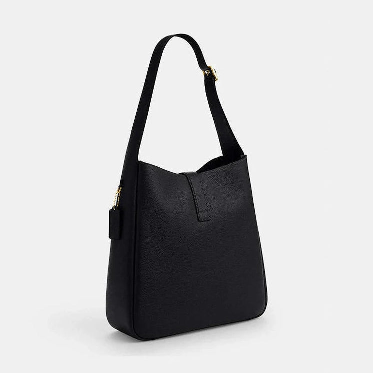 Crafted from premium pebbled leather, the Coach Hadley Large Shoulder Bag combines durability with refined style. Its spacious interior offers practical organization for daily essentials, while the gold-tone hardware adds a sophisticated contrast to the classic black finish. Designed for both function and elegance, this shoulder bag elevates professional and casual ensembles alike.