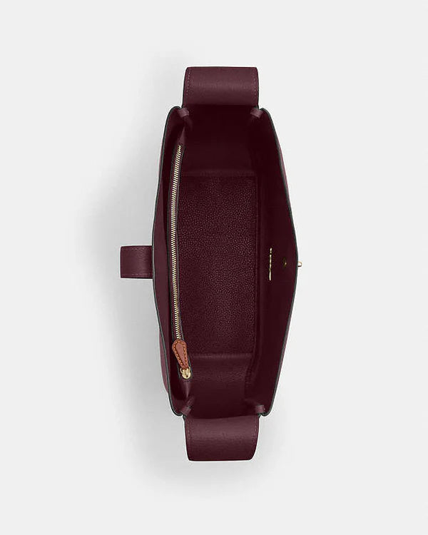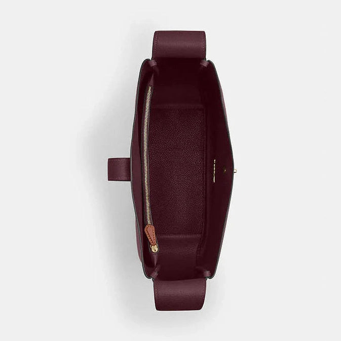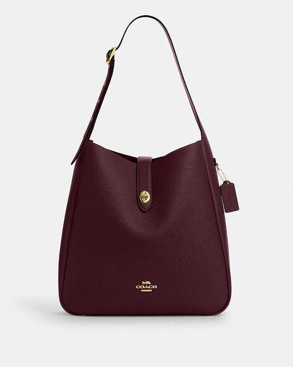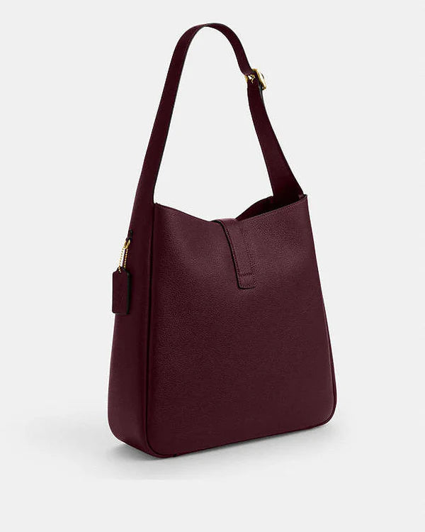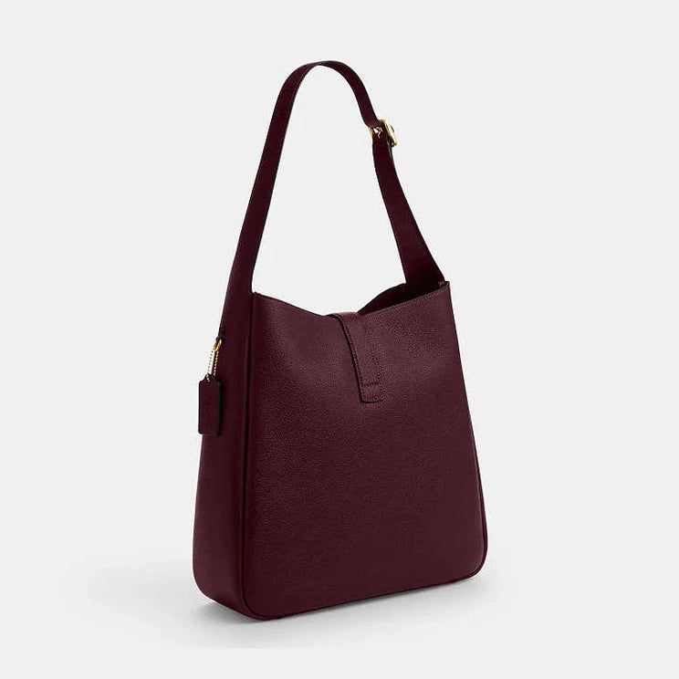 The Coach Hadley Large Shoulder Bag in Pebbled Leather showcases a rich Dark Wine color with a refined texture for lasting appeal. Featuring ample interior space and sturdy construction, this bag combines elegance with practicality. Gold-tone accents accentuate its sophisticated design, making it a versatile choice for both professional settings and everyday wear.