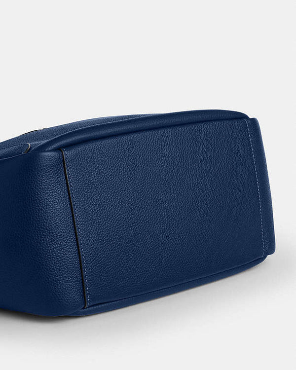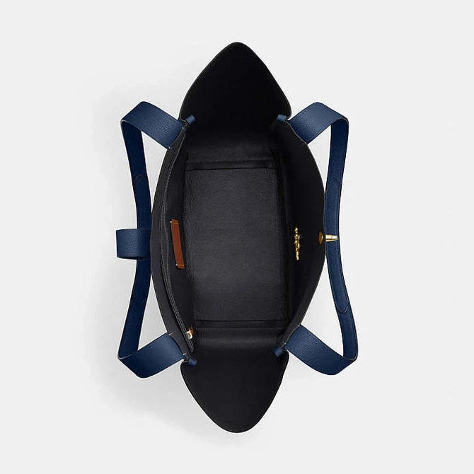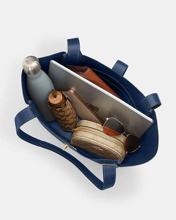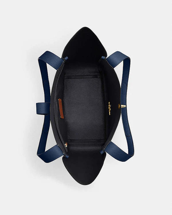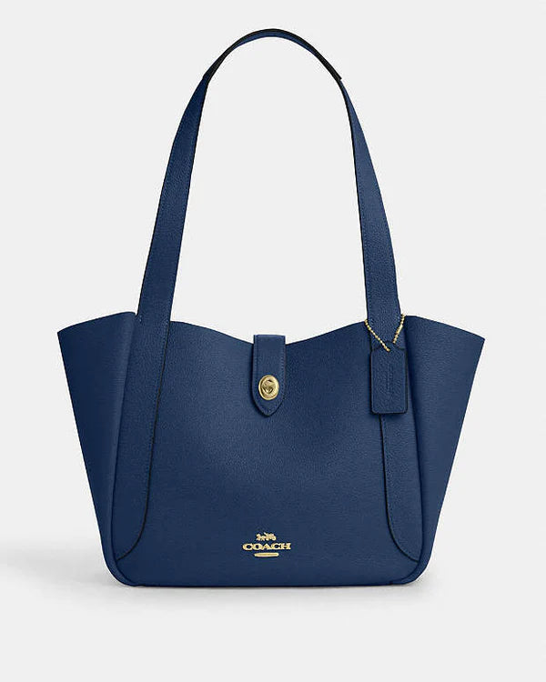 The Coach Hadley Turnlock Tote Bag in pebbled leather features a striking deep blue hue accented with gold-tone hardware for a sophisticated finish. Its spacious interior is designed to carry daily essentials with ease, while the secure turnlock closure adds both style and protection. Crafted with durable textured leather and sturdy handles, this tote balances practical functionality with refined elegance, making it an ideal choice for work or weekend outings.