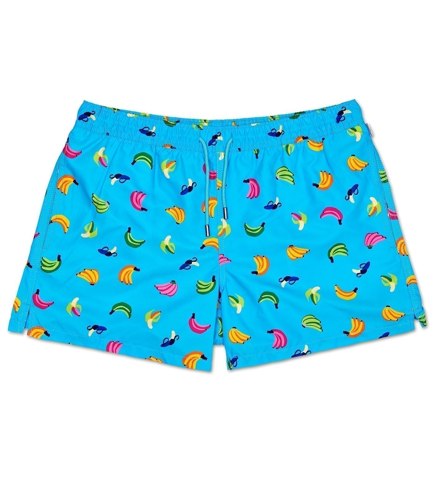 Add a splash of happiness to your summer wardrobe with our vibrant swim shorts featuring sunny yellow bananas against a light blue background. Crafted with high-quality polyester shell fabric and a supportive mesh lining, these stylish men's swim shorts combine playful design with durability. The elastic waist with drawstrings ensures a comfortable fit, perfect for beach days or poolside lounging. Designed by Happy Socks, a renowned Swedish brand known for unique patterns and craftsmanship, these swim trunks are ideal for men seeking fun, functional swimwear. Pair them with colorful socks like ankle socks, crew socks, or sports socks for a complete summer look. Avoid bleaching or ironing to maintain their vibrant colors and extend their lifespan. Whether you're hitting the pool or enjoying a seaside holiday, these swim shorts are a perfect addition to your summer essentials. Explore our collection of socks for women, kids socks, and designer socks to complement your style. Experience the best in quality and design with the top socks brand in India and elevate your casual and swimwear game.