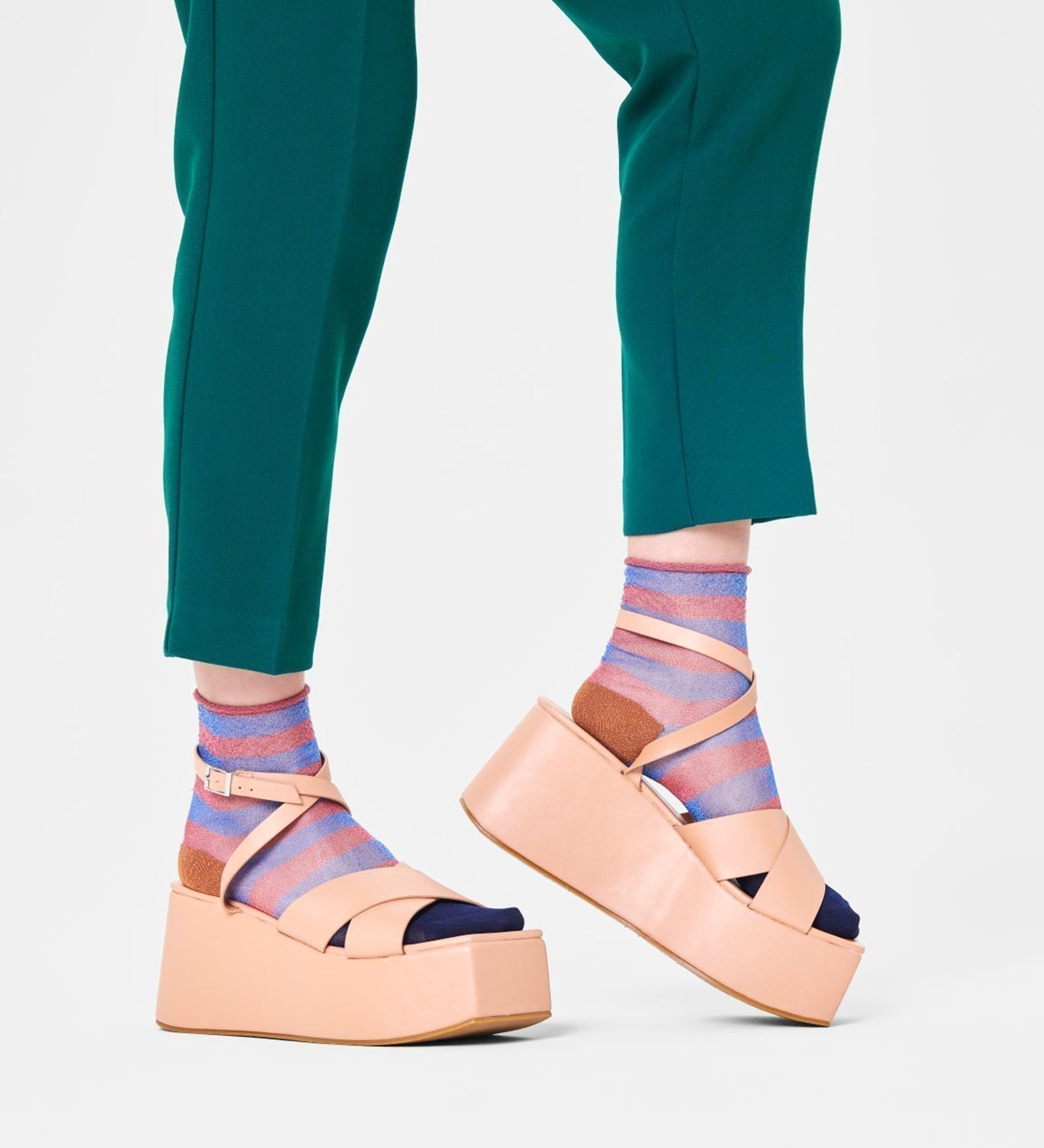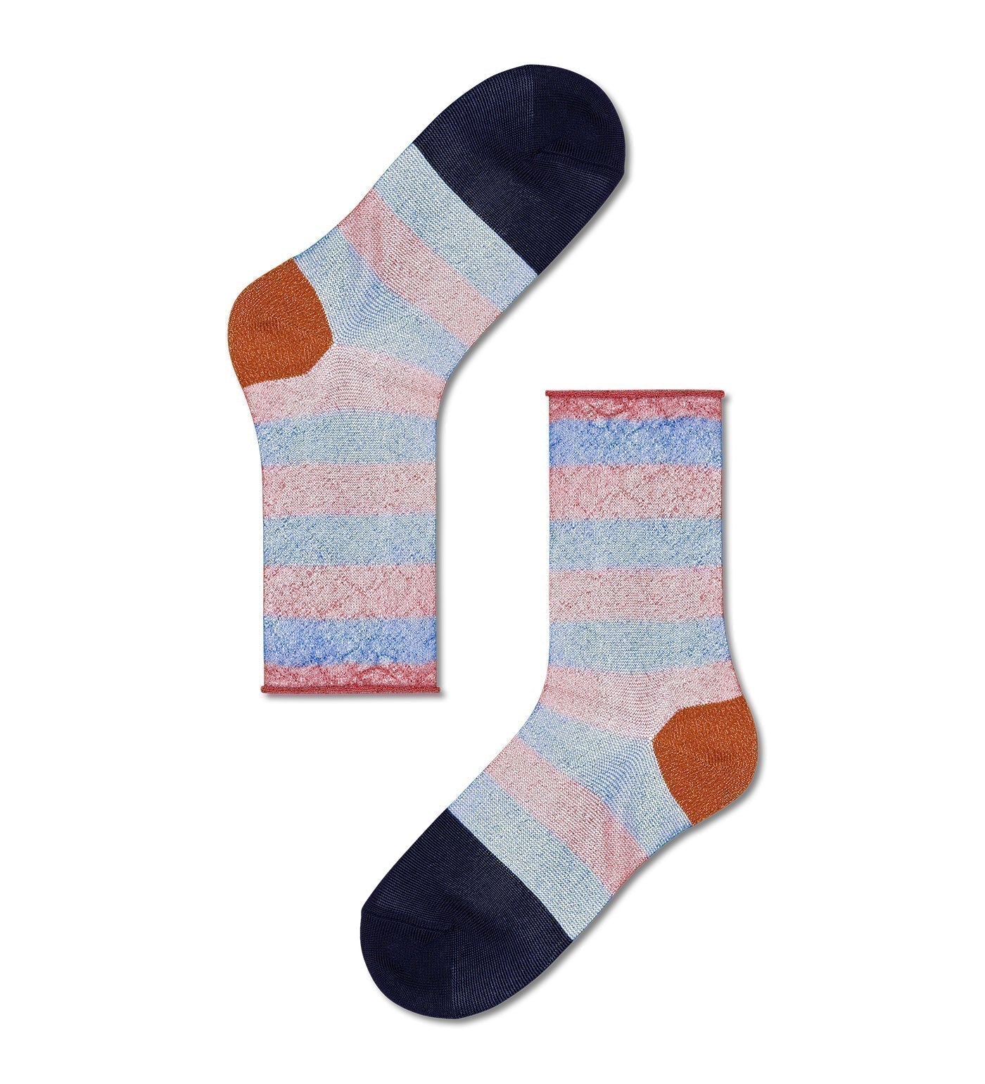 Add glamour to your everyday style with Happy Socks Franca Calf Length Socks for Women. Designed with a crinkly lurex finish, these socks bring sparkle and sophistication to any outfit, whether casual or for special occasions. Made from a luxurious mix of 58% polyamide, 25% viscose, and 17% metallised fiber, they offer a soft, comfortable feel with a shimmering look that stands out. Reinforced heel and toe details provide durability, keeping the socks strong and resistant to holes for long-lasting use. As part of Happy Socks’ sustainable approach, these socks are crafted with ethical sourcing and lower emissions, along with care guidelines that extend their life. Stylish and versatile, they make the perfect gift or personal addition to your wardrobe. Elevate your collection with these fashionable ankle length socks that combine comfort, durability and an elegant touch of shine.