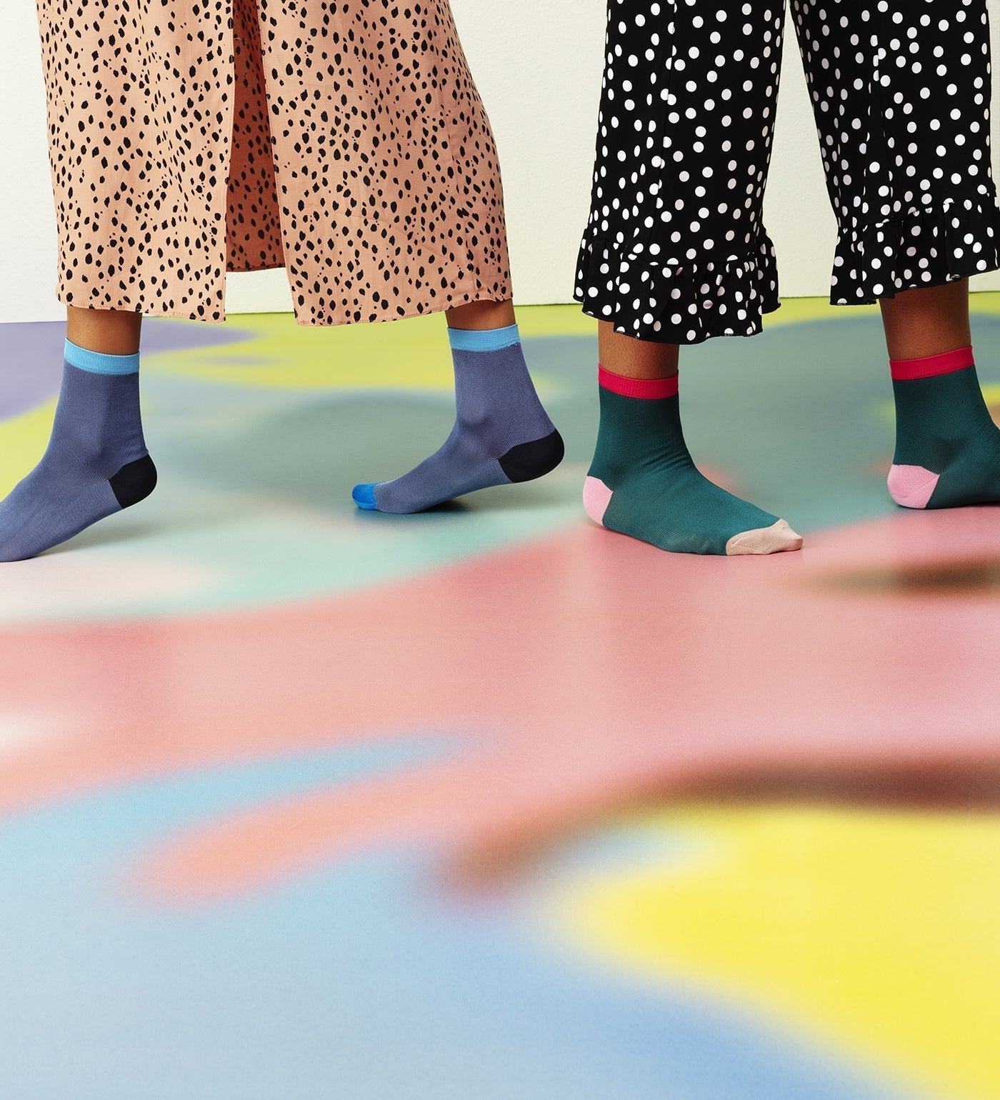 Brighten your wardrobe with Happy Socks Grace Calf Length Socks for Women. These colorful socks feature playful patterns such as polka dots, stripes, and bold graphic themes, making them a fun way to express your style. Crafted in Sweden from a blend of 68% cotton, 30% polyamide, and 2% elastane, they offer a breathable fit that feels soft while remaining durable for daily wear. Reinforced details at the heel and toe ensure strength that lasts, keeping them reliable season after season. Perfect for pairing with sneakers, loafers, or casual shoes, these calf length socks work equally well for office wear, casual looks, or simply when you want to add a pop of color. Available in two sizes, 36-38 and 39-41, they fit a variety of feet comfortably. Whether you are searching for stylish ankle socks, longer socks for women, or a thoughtful gift, the Grace design is a versatile choice. With their high-quality finish and vibrant personality, they are a cheerful addition to any collection.