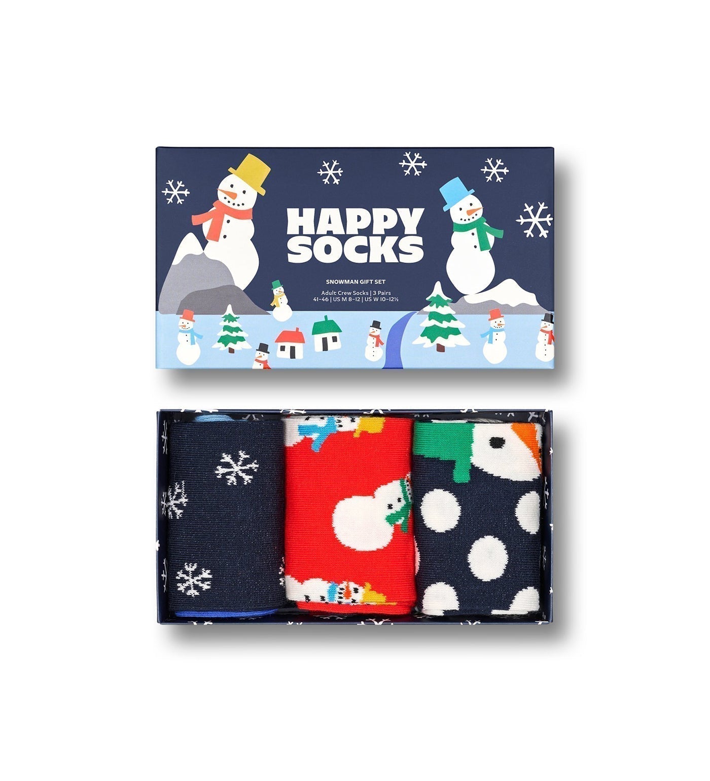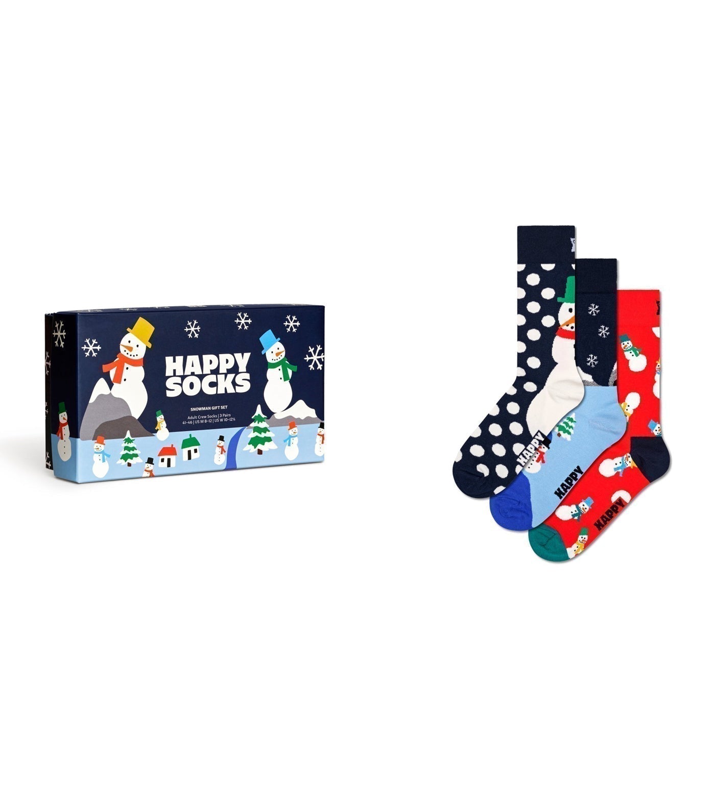Happy Socks Unisex 3-Pack Snowman Crew Length Socks Gift Set for Women and Men