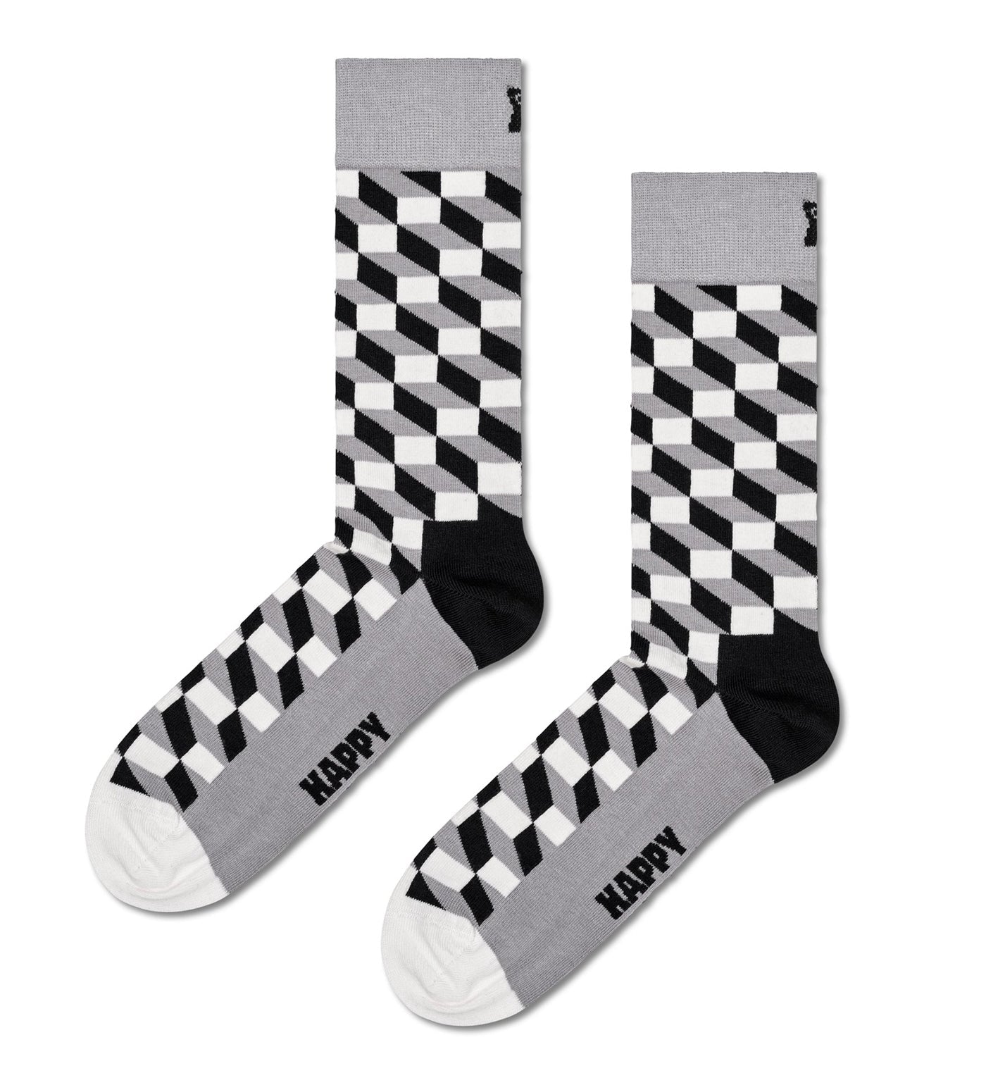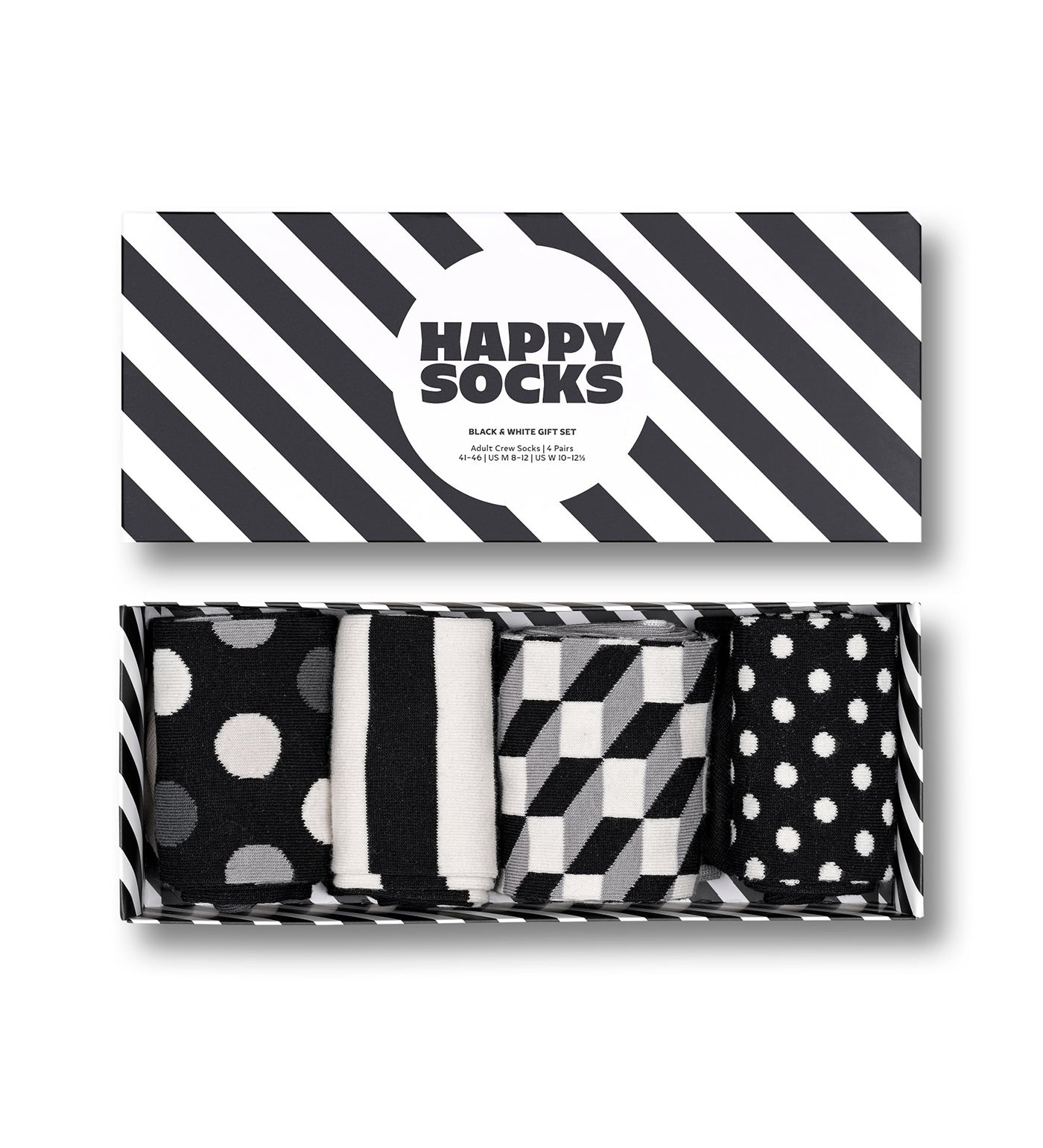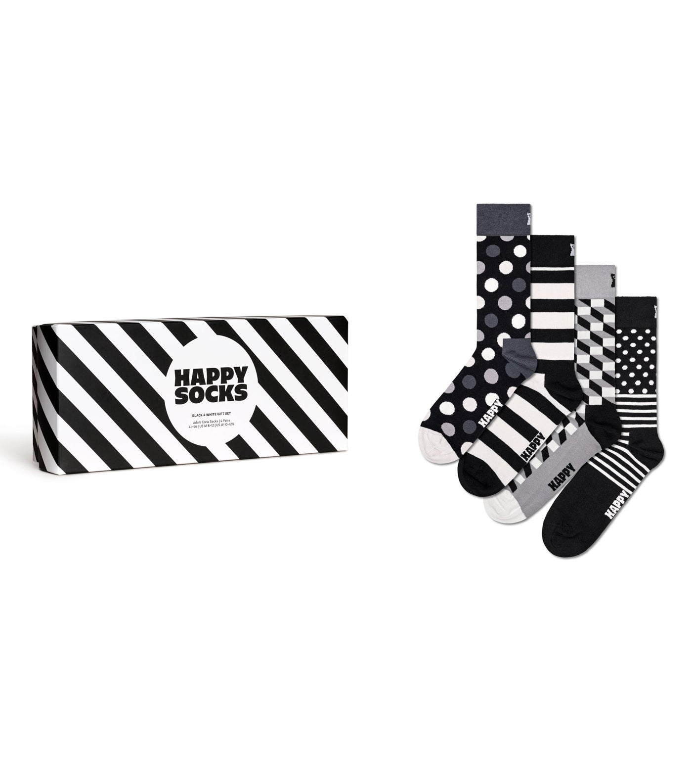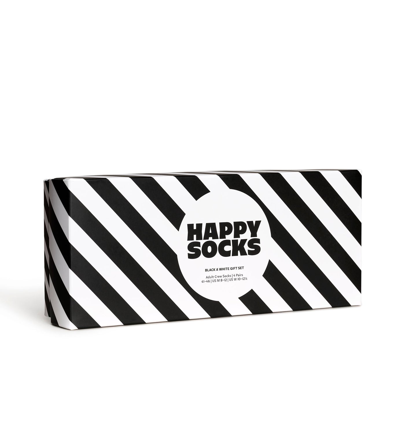 Happy Socks Unisex 4-Pack Classic Black and White Crew Length Socks Gift Set for Women and Men