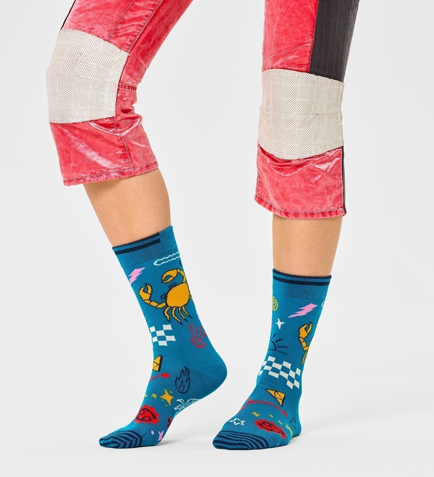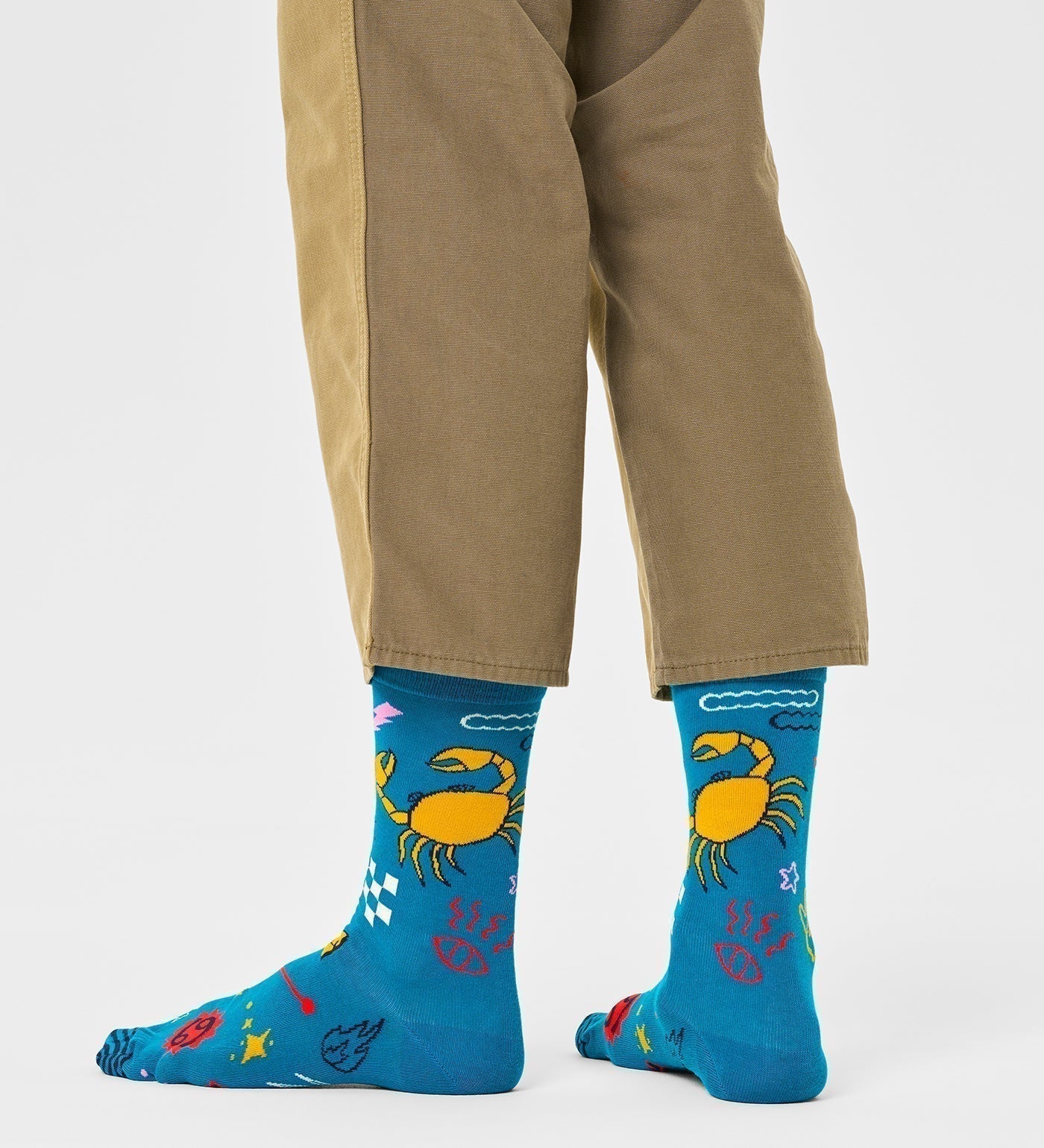 Express your zodiac pride with these vibrant and colorful socks featuring the Cancer zodiac symbol, blending cosmic vibes with eco-friendly comfort. Crafted from soft TENCEL Modal fibers, these crew length socks are perfect for adding a bold, celestial touch to your everyday wardrobe. Whether you're looking for stylish socks for women, men, or kids, this unique design offers a fun and fashionable way to showcase your astrology love. Ideal as a thoughtful gift, these socks make a great choice for birthdays, holidays, or astrology enthusiasts, offering a blend of aesthetic appeal and comfort that suits casual, office, or gym wear. With their striking celestial visuals and high-quality materials, these colorful crew length socks stand out among top sock brands in India, making them a versatile addition to any sock collection. Perfect for those seeking cute socks, funny socks for men, or stylish ankle socks, they combine the best features of fashion and function for all ages and occasions.