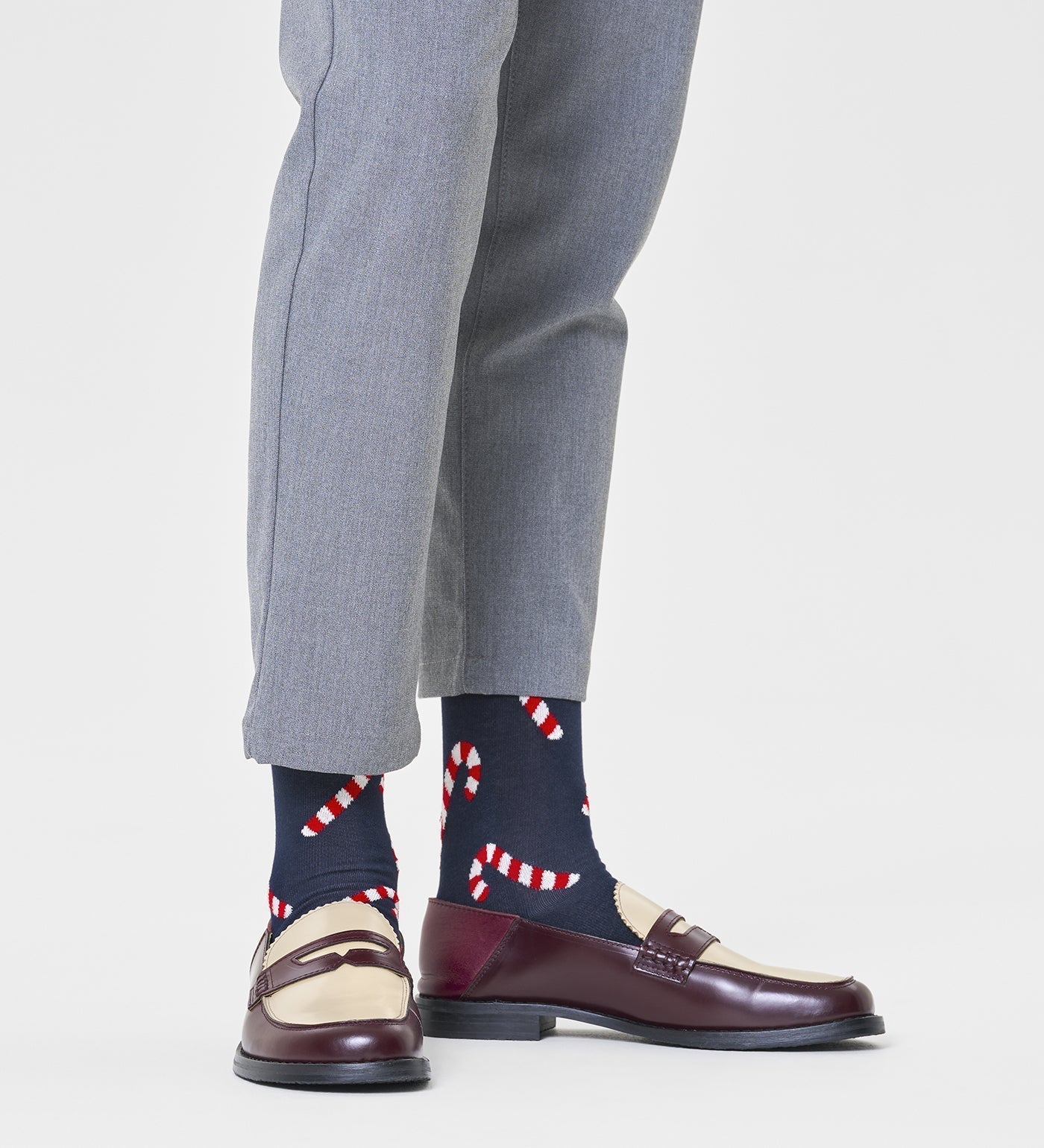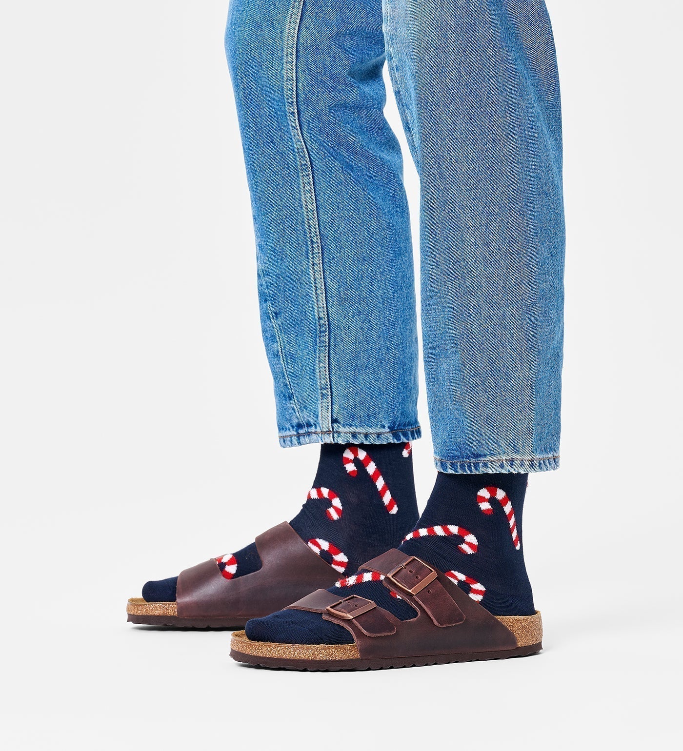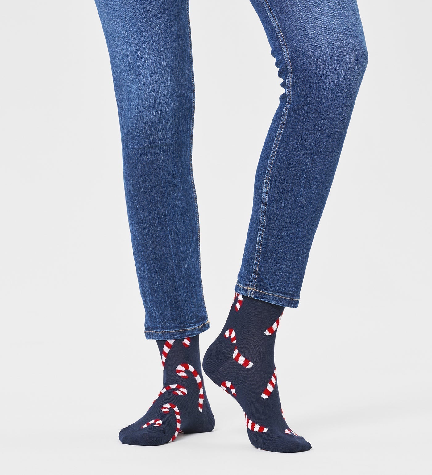 Celebrate the holiday season with festive candy cane crew length socks featuring vibrant red and white stripes on a lively green background, perfect for adding a cheerful touch to any outfit. These playful and colorful socks are designed to bring fun and creativity to your wardrobe, whether you're dressing up for parties, casual gatherings, or everyday wear. Made from soft, durable cotton fabric, they ensure maximum comfort and coziness all season long. Ideal as a unique gift for holiday partygoers, gift boxes, or anyone who loves colorful and cute socks, these crew length socks embody the spirit of celebration. Whether you need socks for women or men, these unisex socks are a versatile choice that combines style, comfort, and festive flair. As part of the best socks brand in India, they also fit seamlessly into collections of designer socks, sports socks, and casual ankle socks. Step into fun and color with Happy Socks’ cheerful holiday crew socks, celebrating creativity and joyful dressing every day.