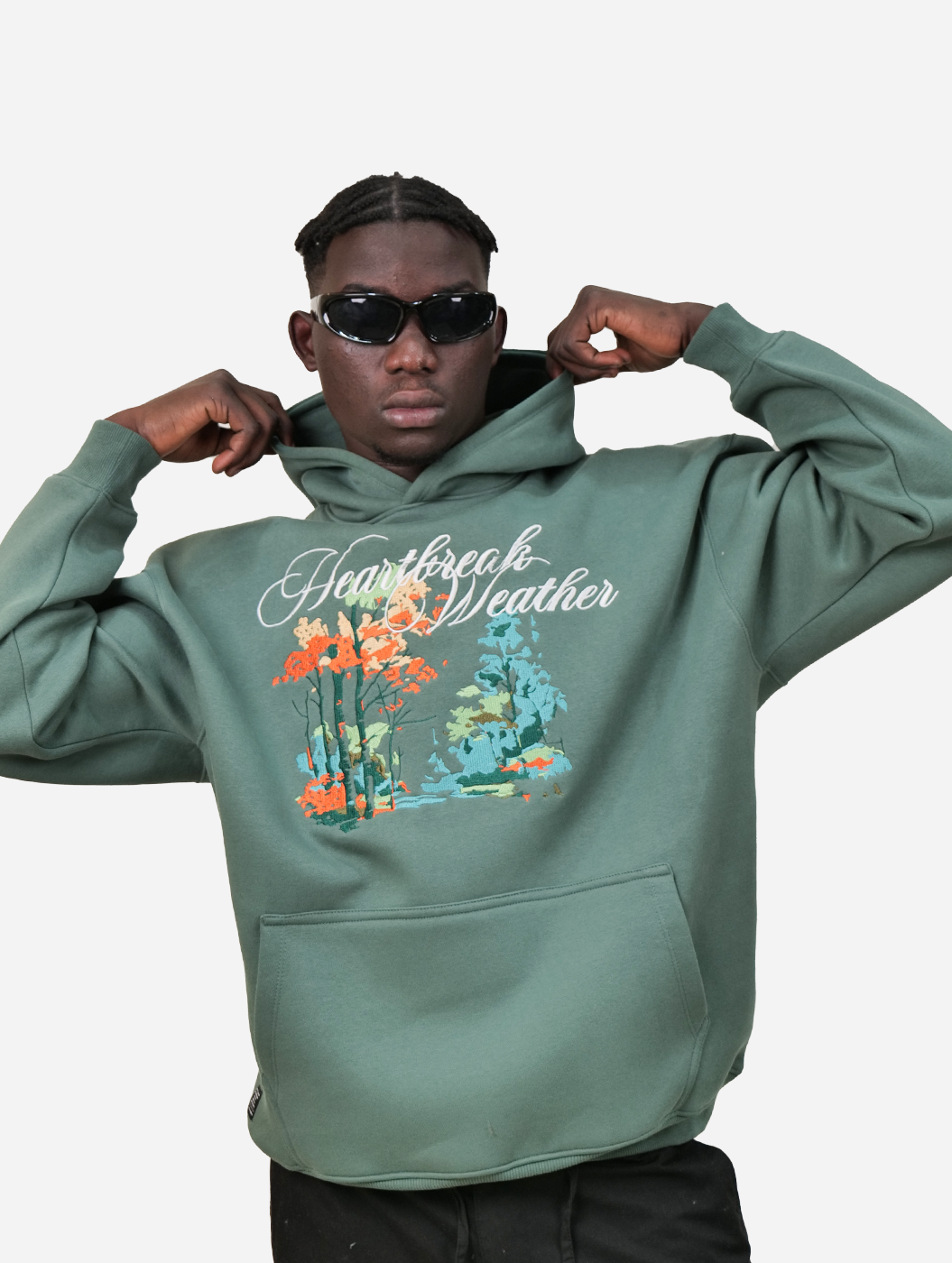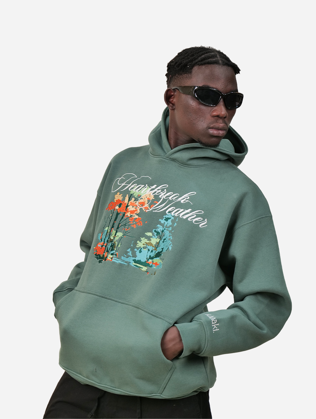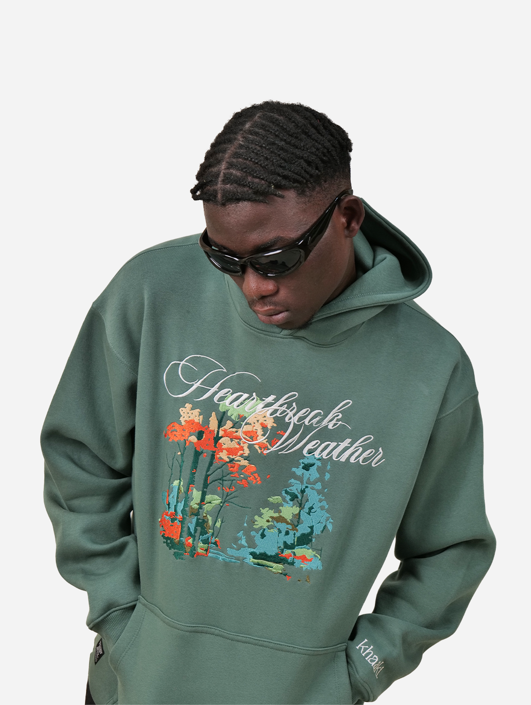 Heartbreak Weather - Green Drop Shoulder Oversized Hoodie