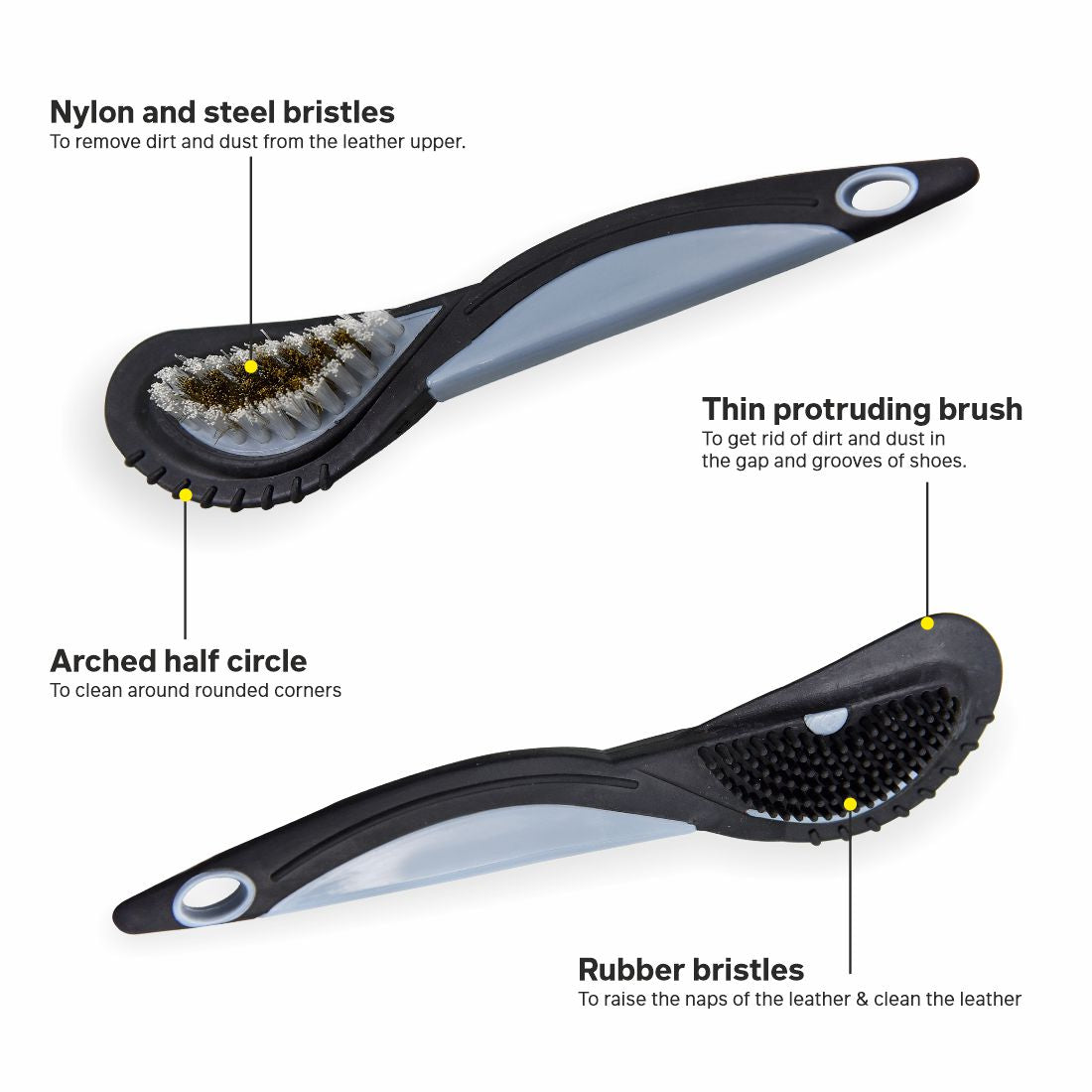 - Combination of nylon and steel bristles which help to effectively remove dirt and dust from the leather upper.