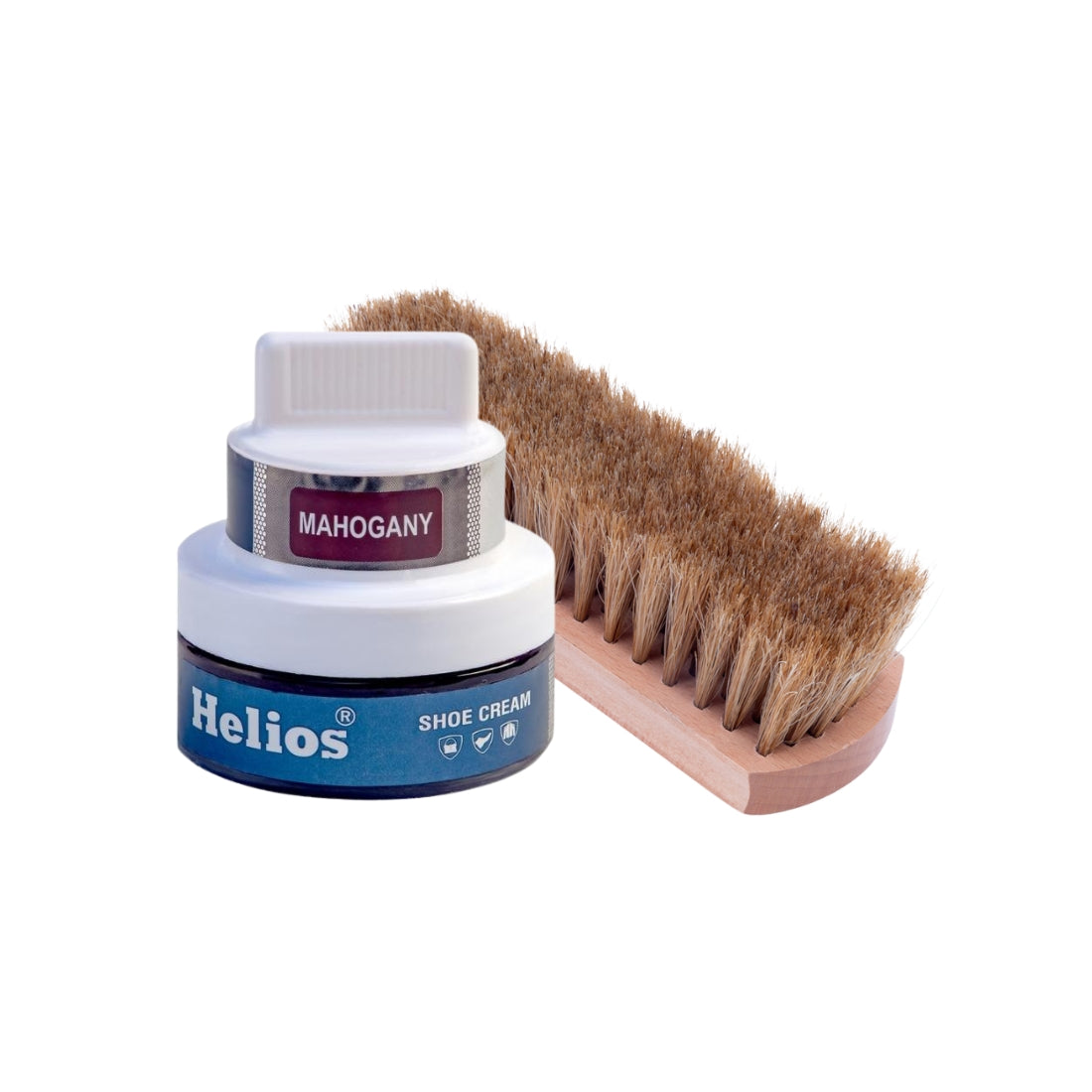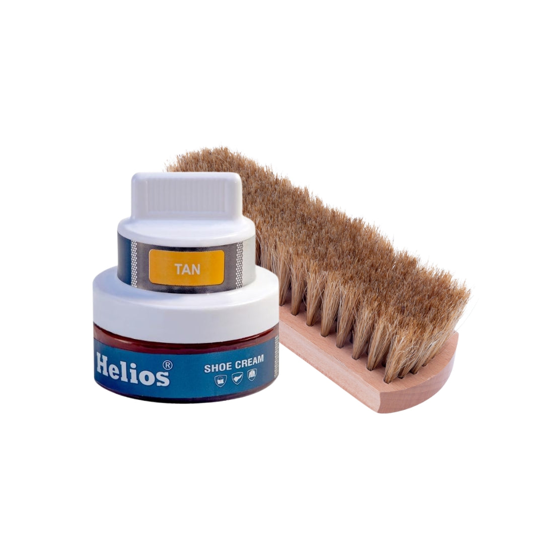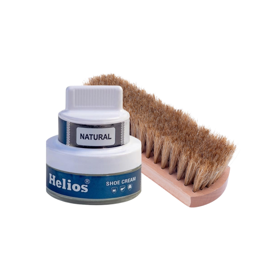 Helios Shoe Cream Glass Jar with Applicator with Helios Horse Hair Shoe Brush - (Light Brown, 6.5 Inch)