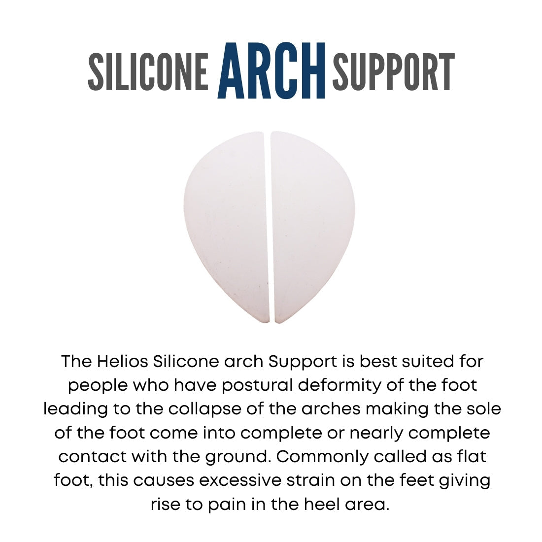 The Helios Silicone arch Support is best suited for people who have postural deformity of the foot leading to the collapse of the arches making the sole of the foot come into complete or nearly complete contact with the ground. Commonly called as flat foot, this causes excessive strain on the feet giving rise to pain in the heel area. The ergonomic design of the Helios Silicone Arch Support provides cushioning to the feet by maintaining the arch and thus relieves them of pressure over load and pain.