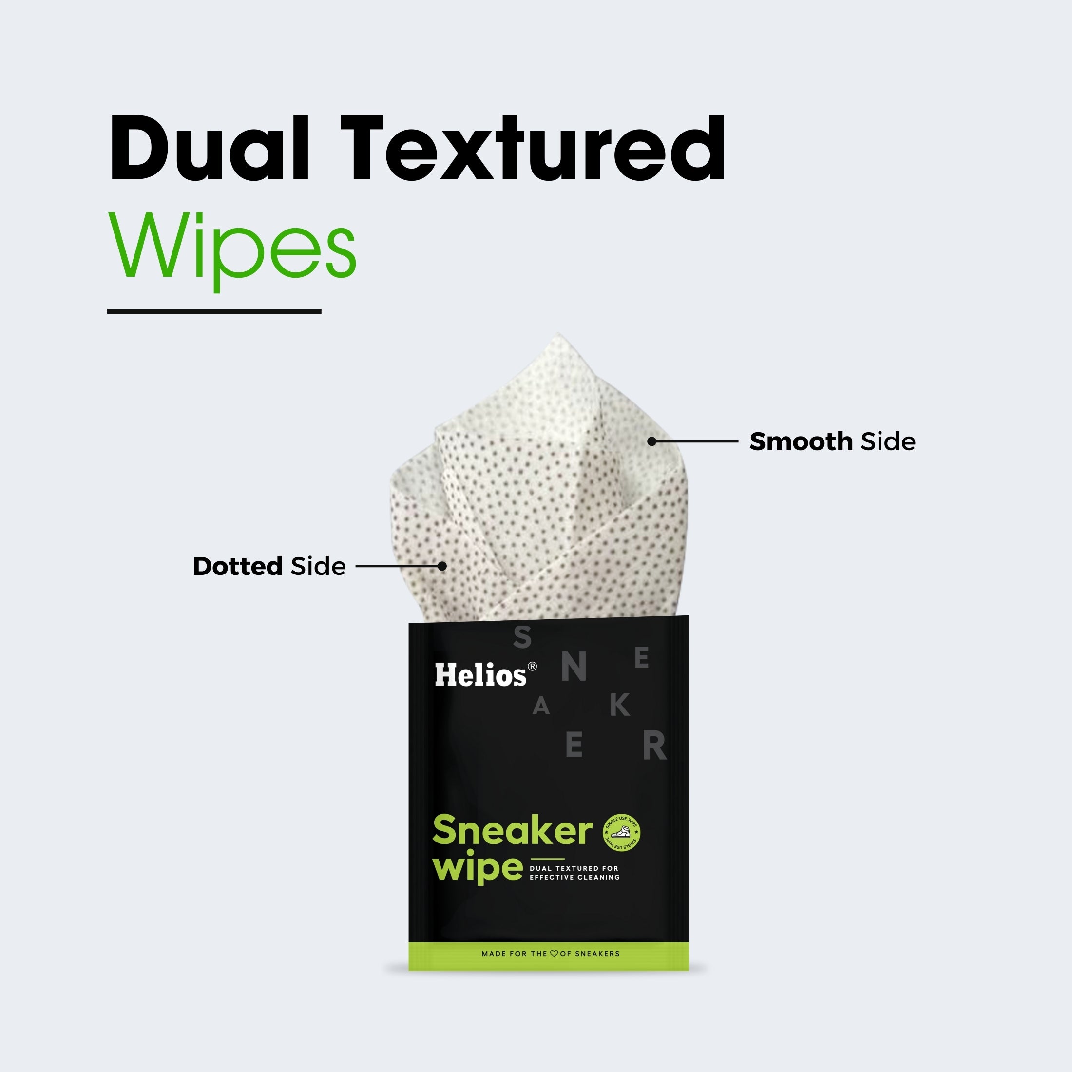 Finding it difficult to squeeze in a shoe care routine into your busy day? The Helios Sneaker Wipes is what you need. These wipes are specially designed to help you clean your shoes on the go. Thanks to the convenient and compact packaging, you can slip these wipes into your office bag, purse, gym bag and even your pocket.
