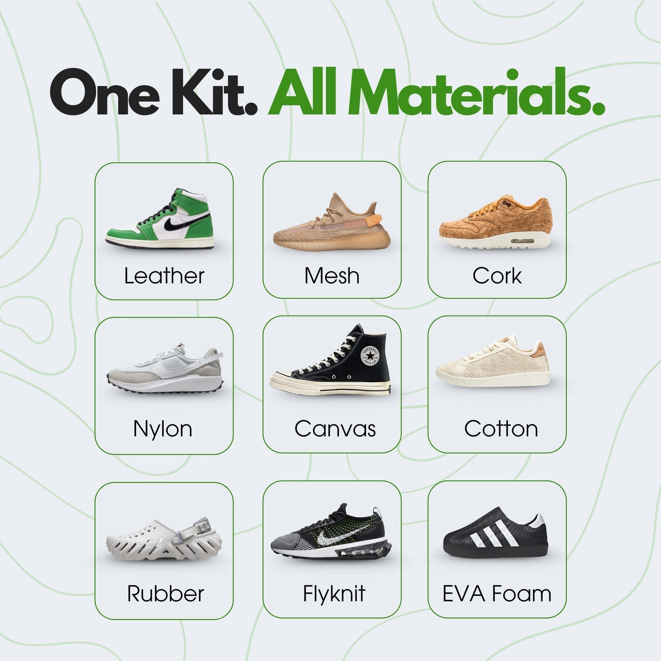 - The solution is free of any harmful chemicals and is completely safe to be used on sneakers of varied materials like suede, leather mesh, fabric, knit, textile, etc.