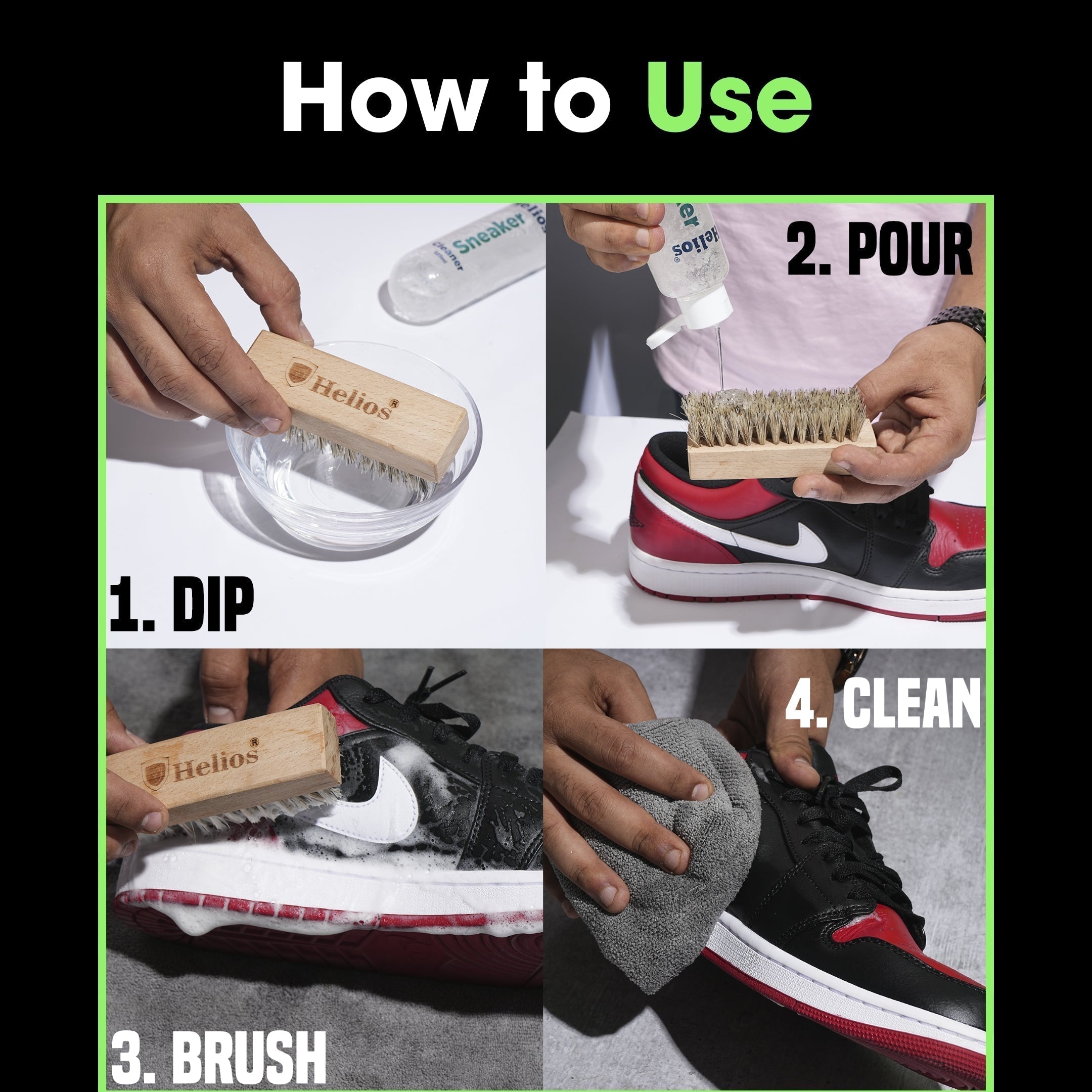 The Helios Super Sneaker Cleaner is our signature product which is the perfect go-to kit for all sneakerheads . The kit includes :
