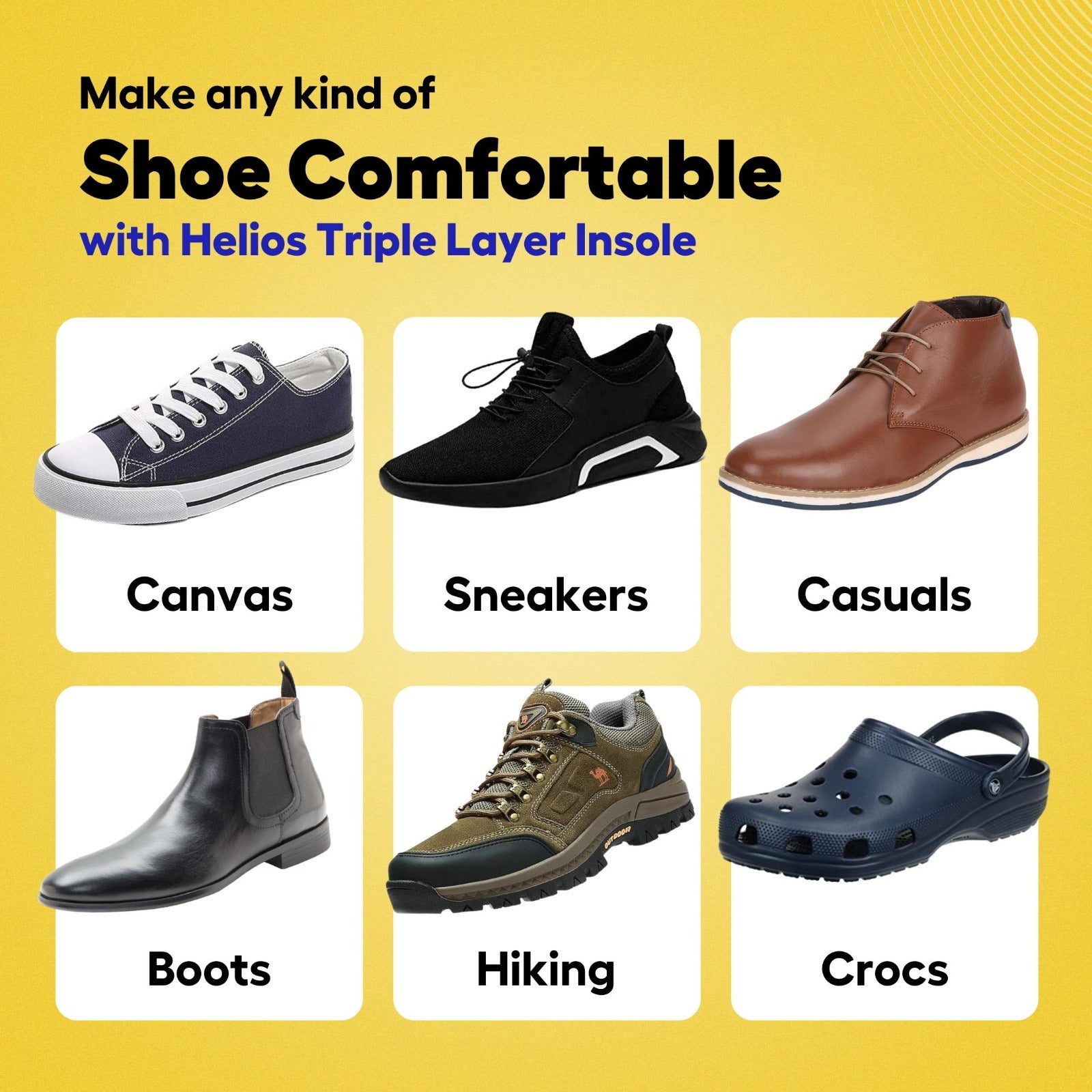 HELIOS TRIPLE LAYER ULTRA COMFORT INSOLES FOR PAIN RELIEF & SHOCK ABSORPTION (TRIM TO FIT SIZE 7-11)
