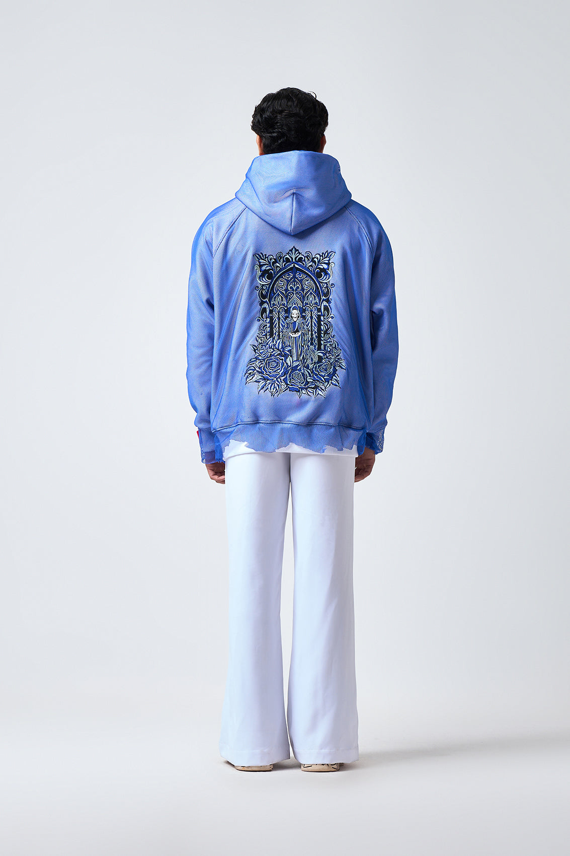 - 14 Lakh stitches embroidery on the back with a mesh overall.