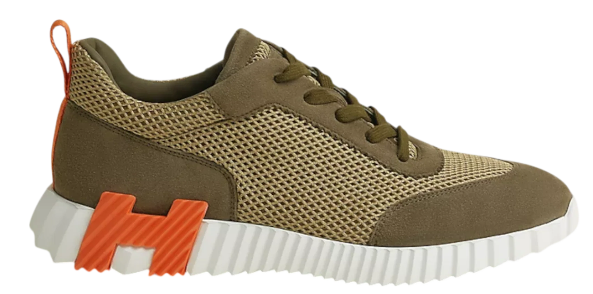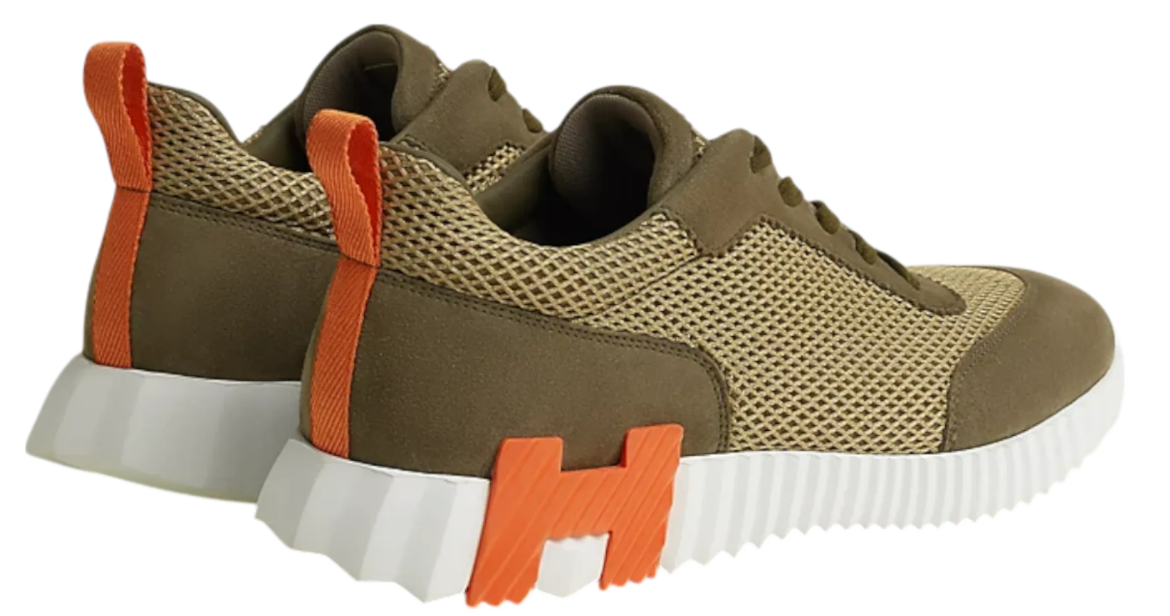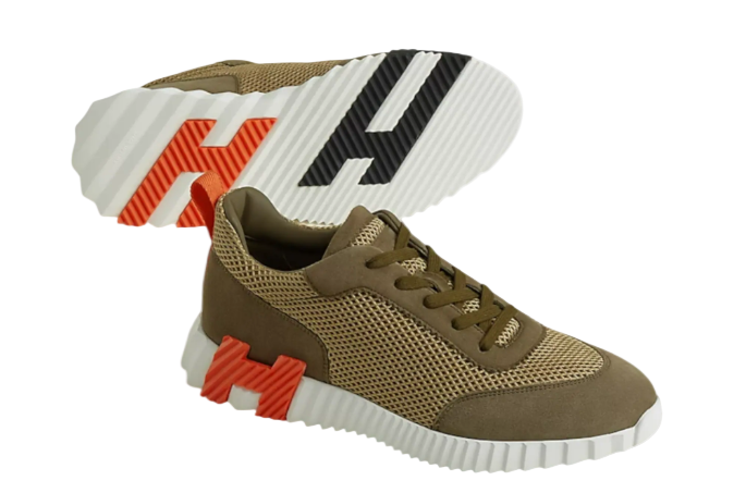 The Hermes Bouncing Sneaker in Vert Toundra/Green offers a harmonious blend of performance and style. Engineered with advanced bounce cushioning, it delivers responsive support and superior shock absorption, enhancing comfort during extended wear. The earthy Vert Toundra hue accented with green details creates a distinctive, natural look that complements active and casual outfits alike. Crafted from high-quality materials, this sneaker ensures durability, breathability, and reliable foot support for all-day wear. Perfect for those who value expert design and functional elegance in their footwear.