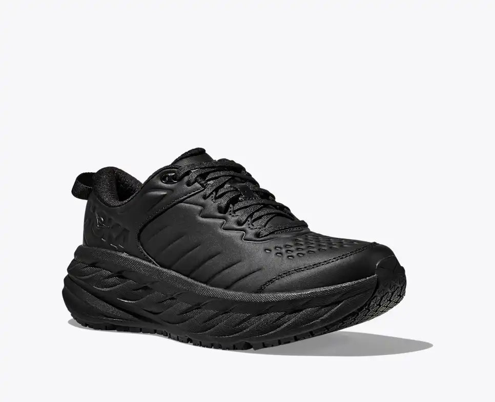 The Hoka Bondi SR black / black shoe offers unrivaled comfort and support. The carbon fiber construction provides superior durability and the sleek black and white design adds a touch of elegance. With Hoka's Bondi technology, this shoe offers maximum cushioning and stability for all-day wear. Perfect for athletes or those on their feet all day.
