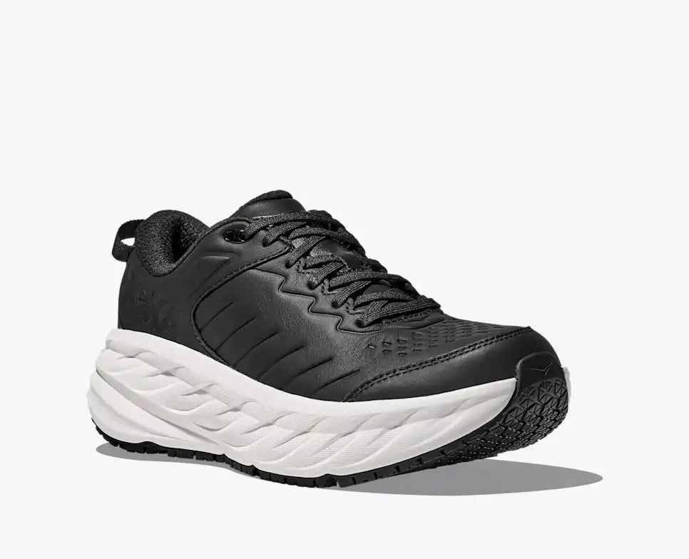 The Hoka Bondi SR carbon black/white shoe offers unrivaled comfort and support. The carbon fiber construction provides superior durability and the sleek black and white design adds a touch of elegance. With Hoka's Bondi technology, this shoe offers maximum cushioning and stability for all-day wear. Perfect for athletes or those on their feet all day.