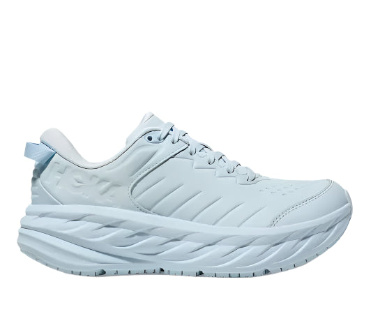 The Hoka Bondi SR ice water/ice water features a specialized design for superior traction on icy surfaces. The innovative upper material is both lightweight and breathable, providing comfort and support with every step. Experience enhanced stability and grip with the Hoka Bondi SR ice water/ice water.