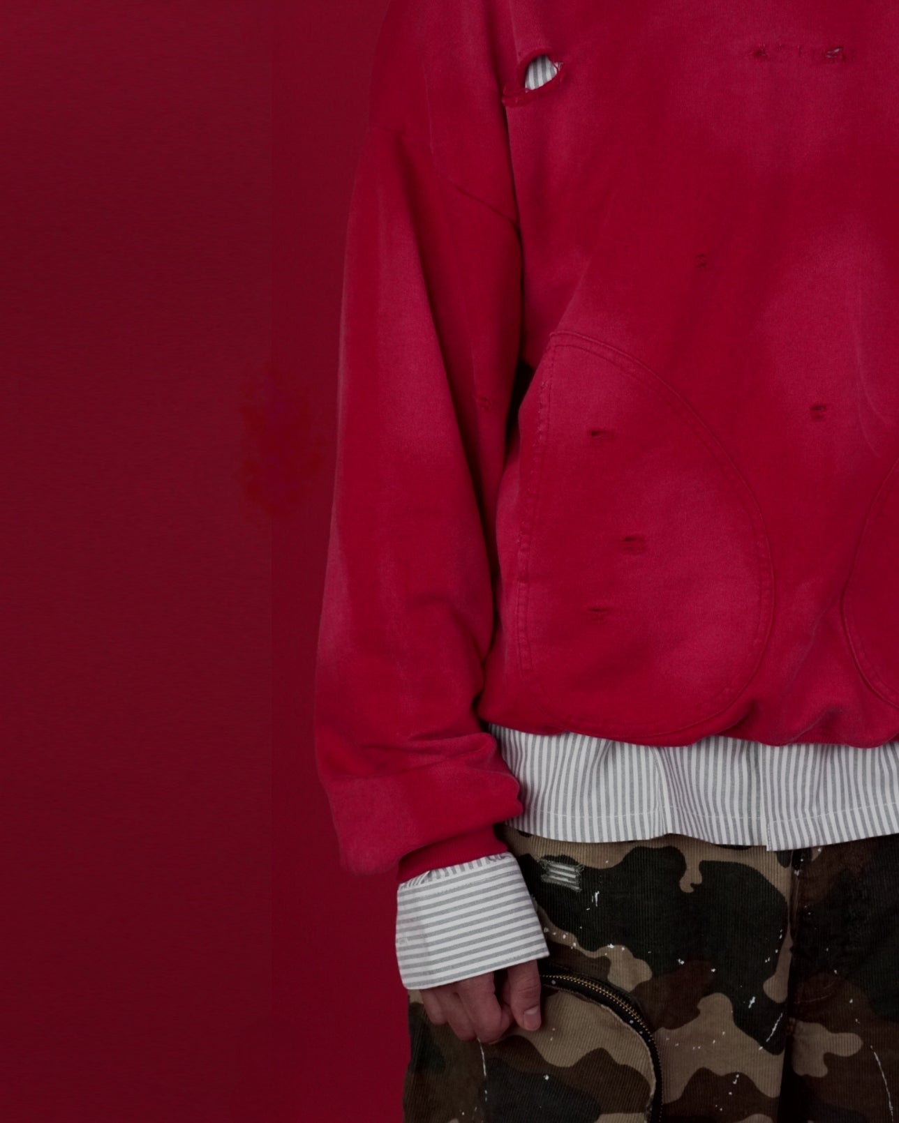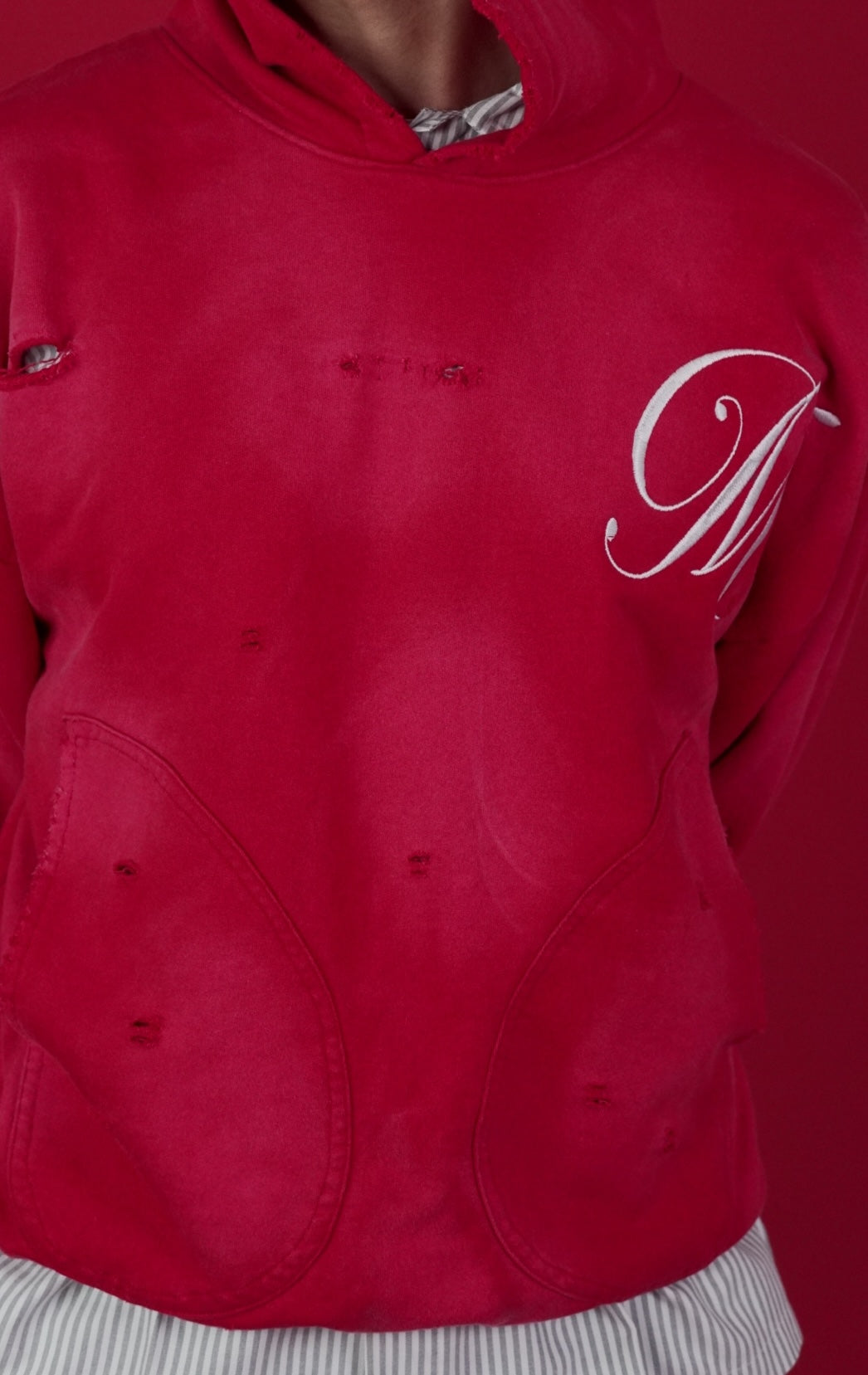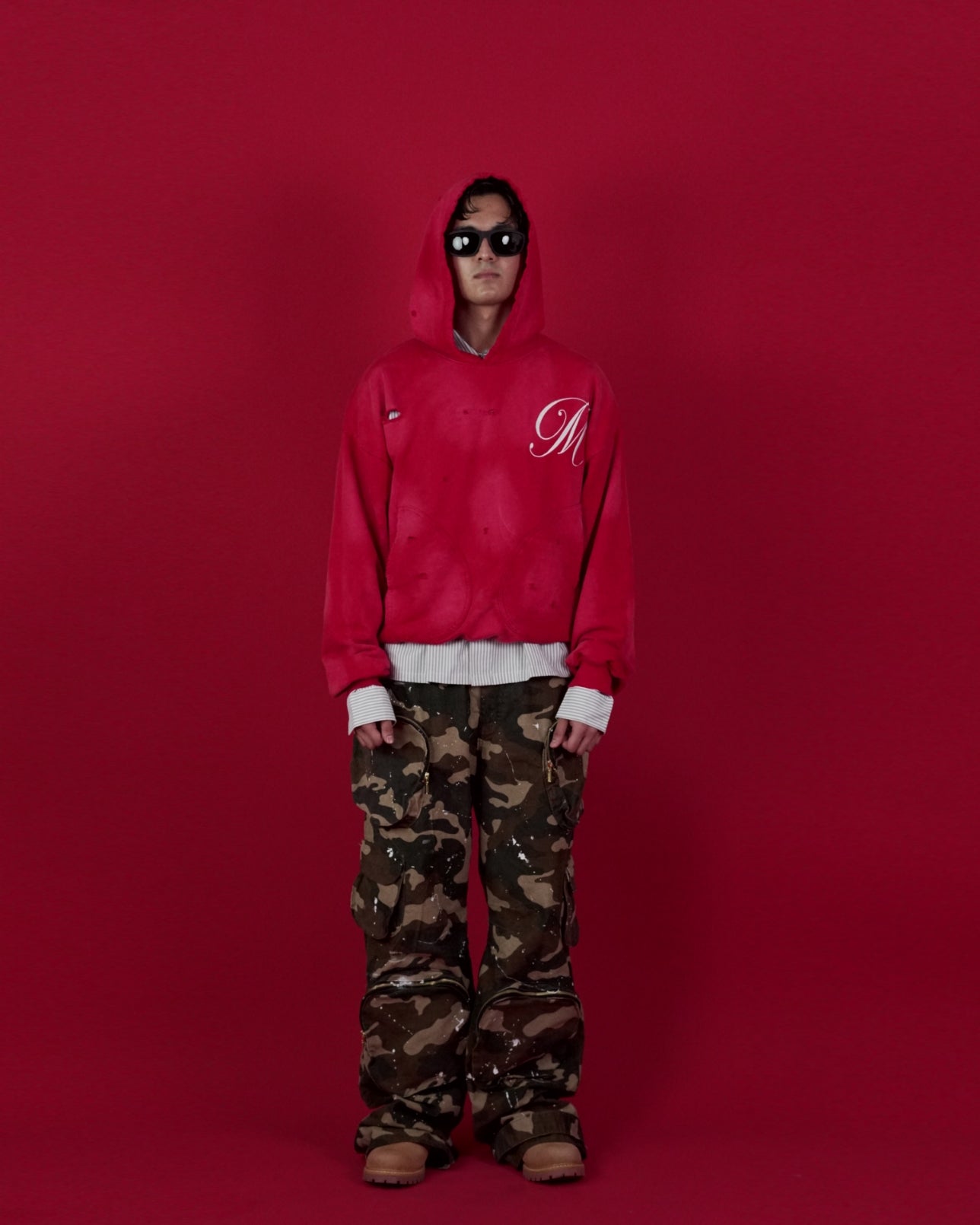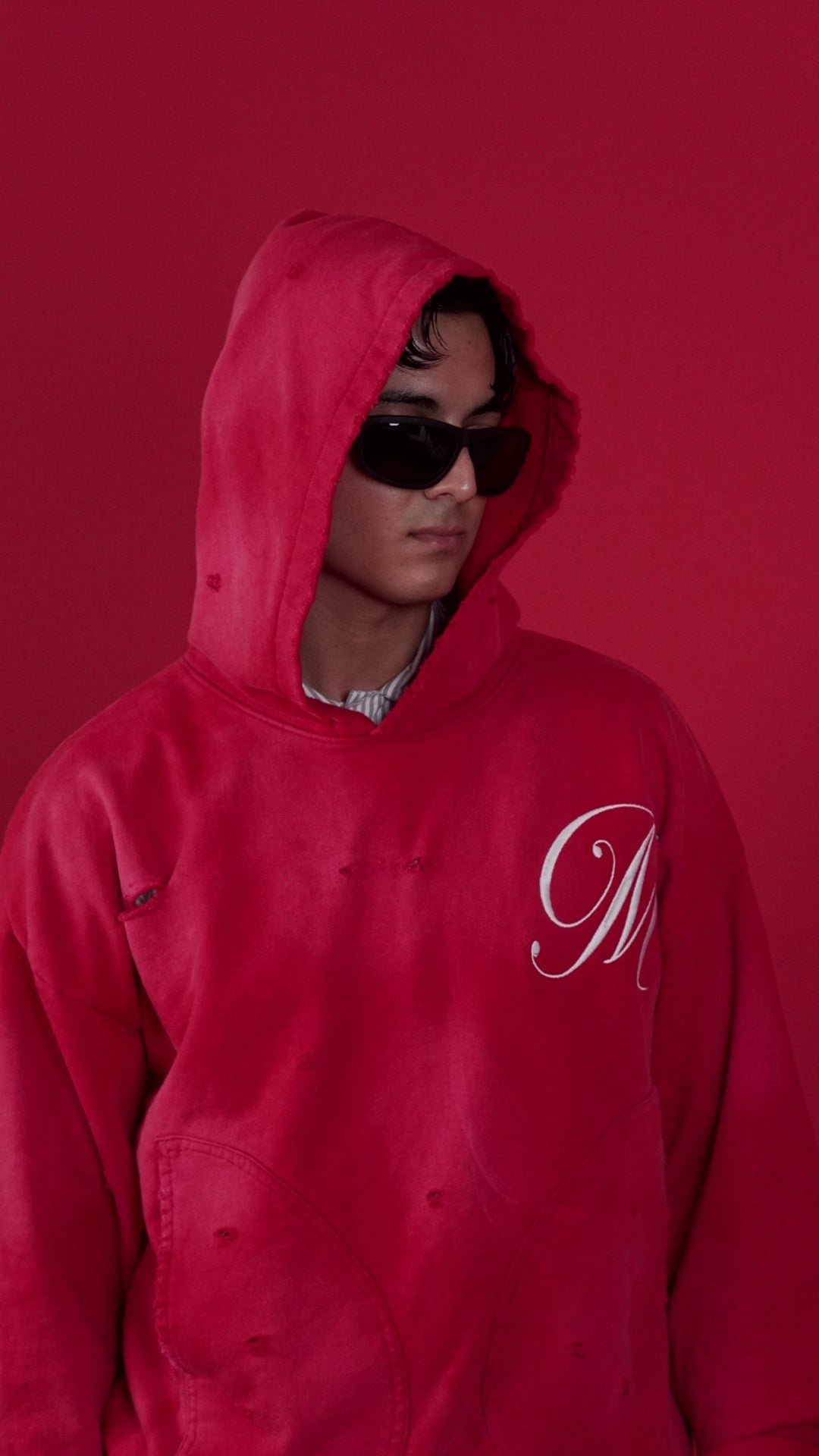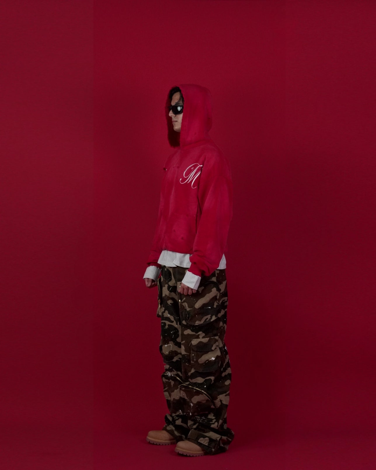 THE HOLIDAY SEASON BY MISSNG TILE. EXPERIENCE IT IN THIS STRIKING CHERRY RED COLORWAY. IT’S A MASTERPIECE OF MODERN STREETWEAR, BLENDING FUNCTIONALITY WITH FLUID DESIGN. EDGY AND ARTISANAL, THIS HOODIE SETS THE BAR FOR WHAT A HOODIE SHOULD BE - THE BENCHMARK STARTS HERE.