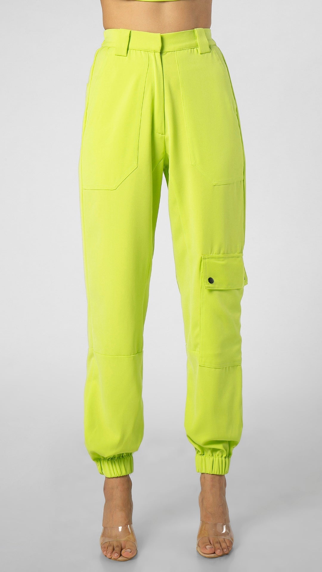 - Elastic cuff at hem for cinched fit on ankle