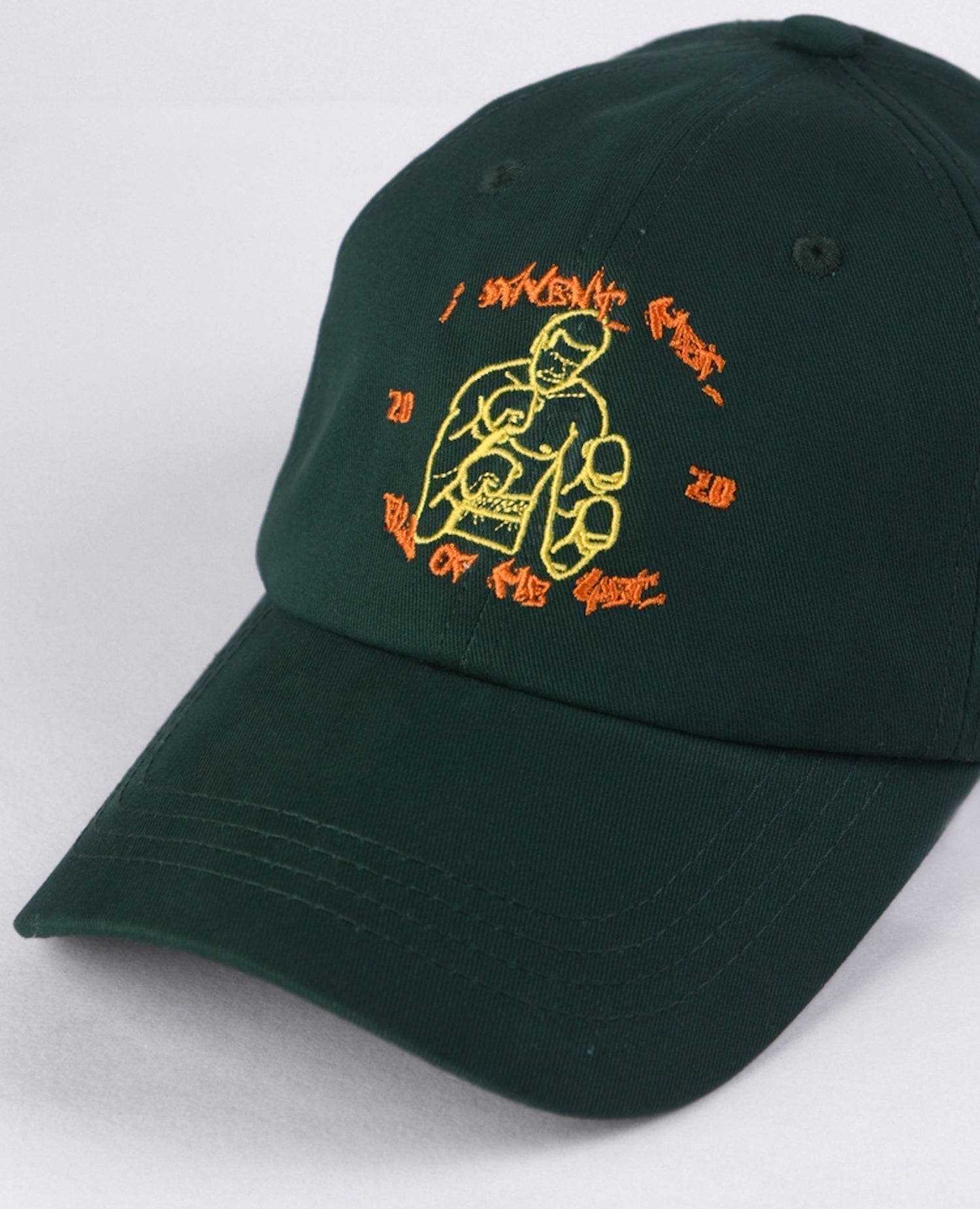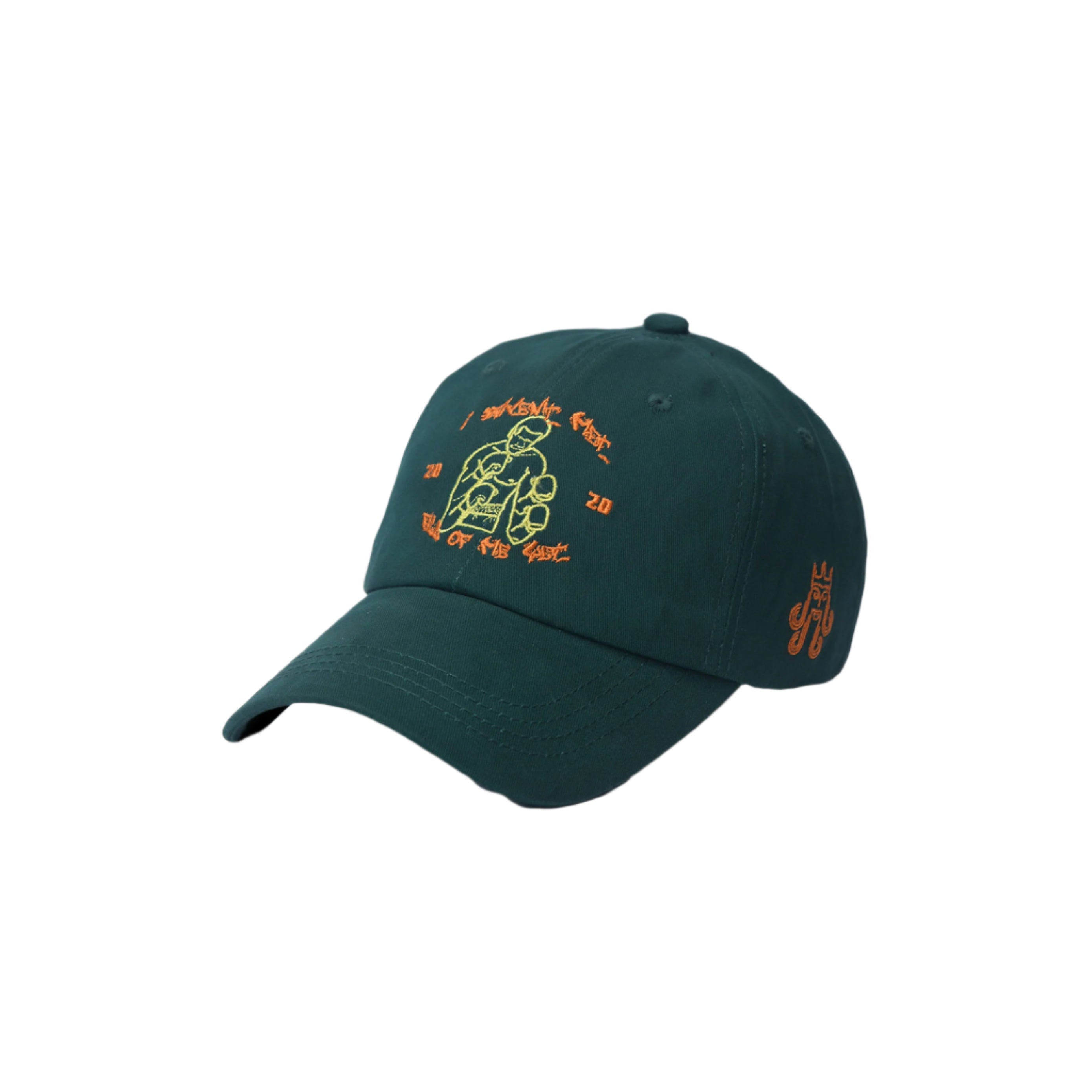 The combination of yellow and orange embroidery adds a vibrant pop of color to the cap, giving it a unique and street-ready look. Whether you're hitting the streets or chasing your dreams, the Dark Green Dad Cap is the perfect companion for the modern hustler.