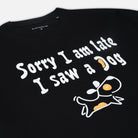 Printed with “sorry I am late, I saw a dog” this dog t-shirt captures spontaneous joy and everyday distractions. Made in soft premium cotton, it’s an easy graphic tee for pet lovers who understand the feeling.