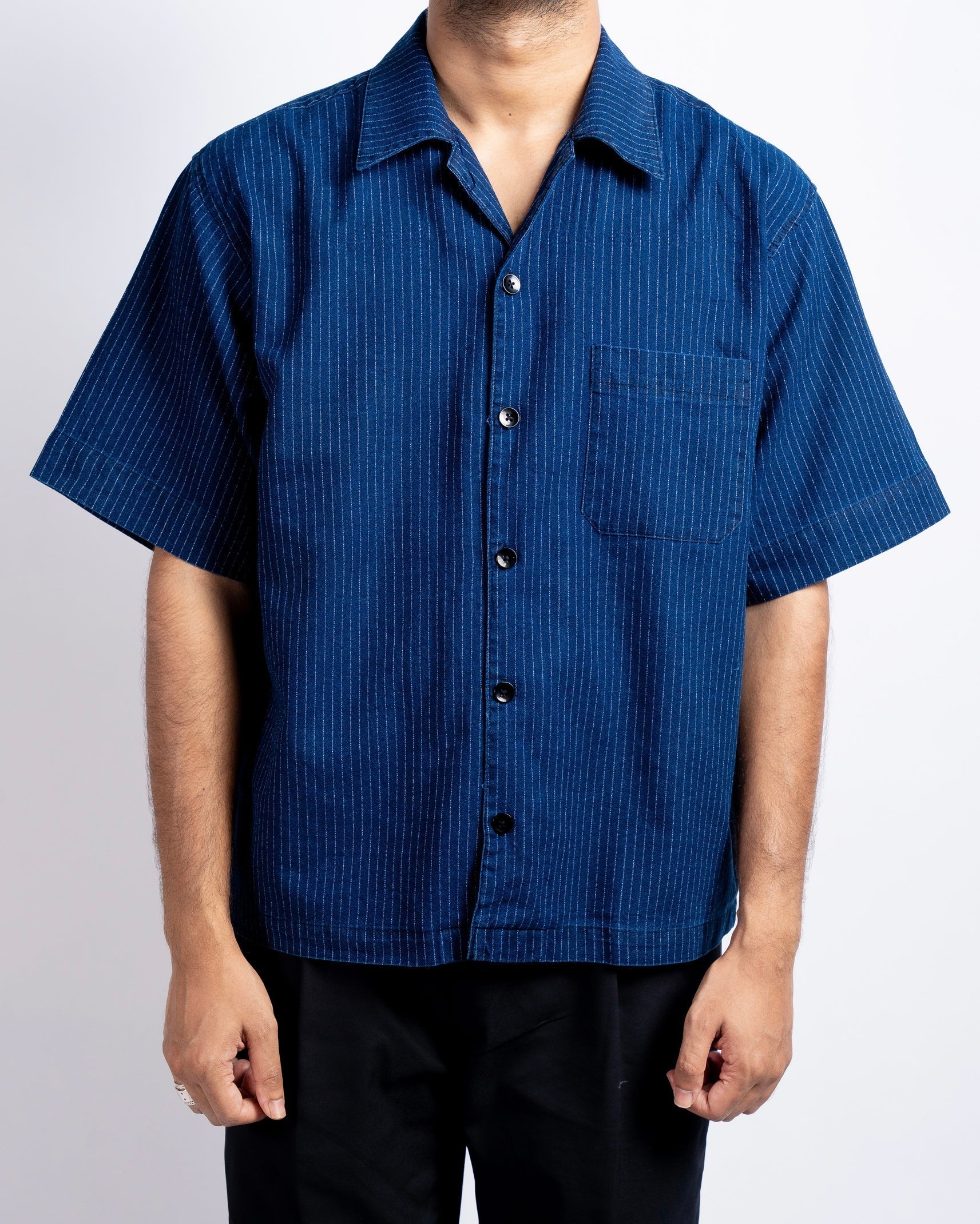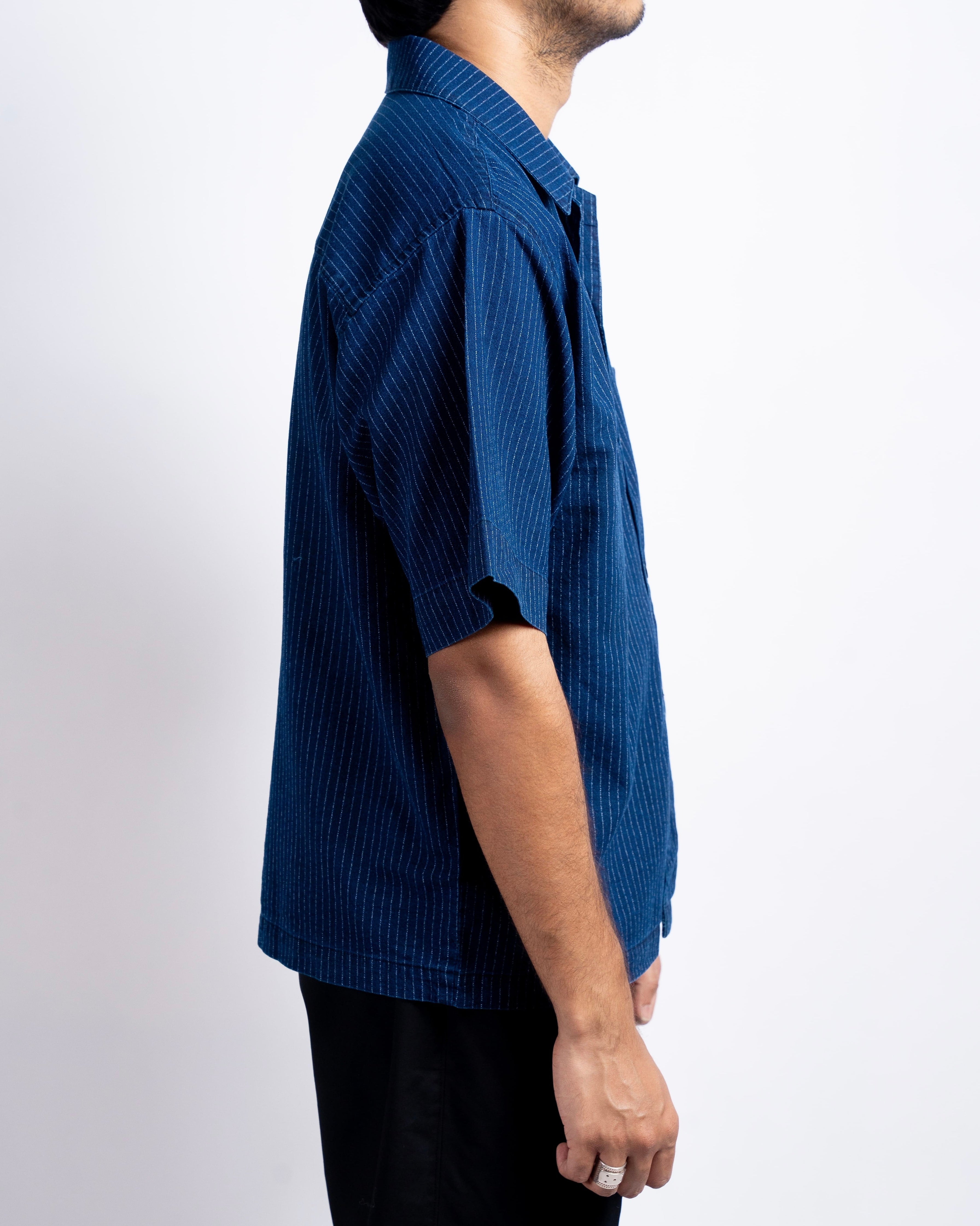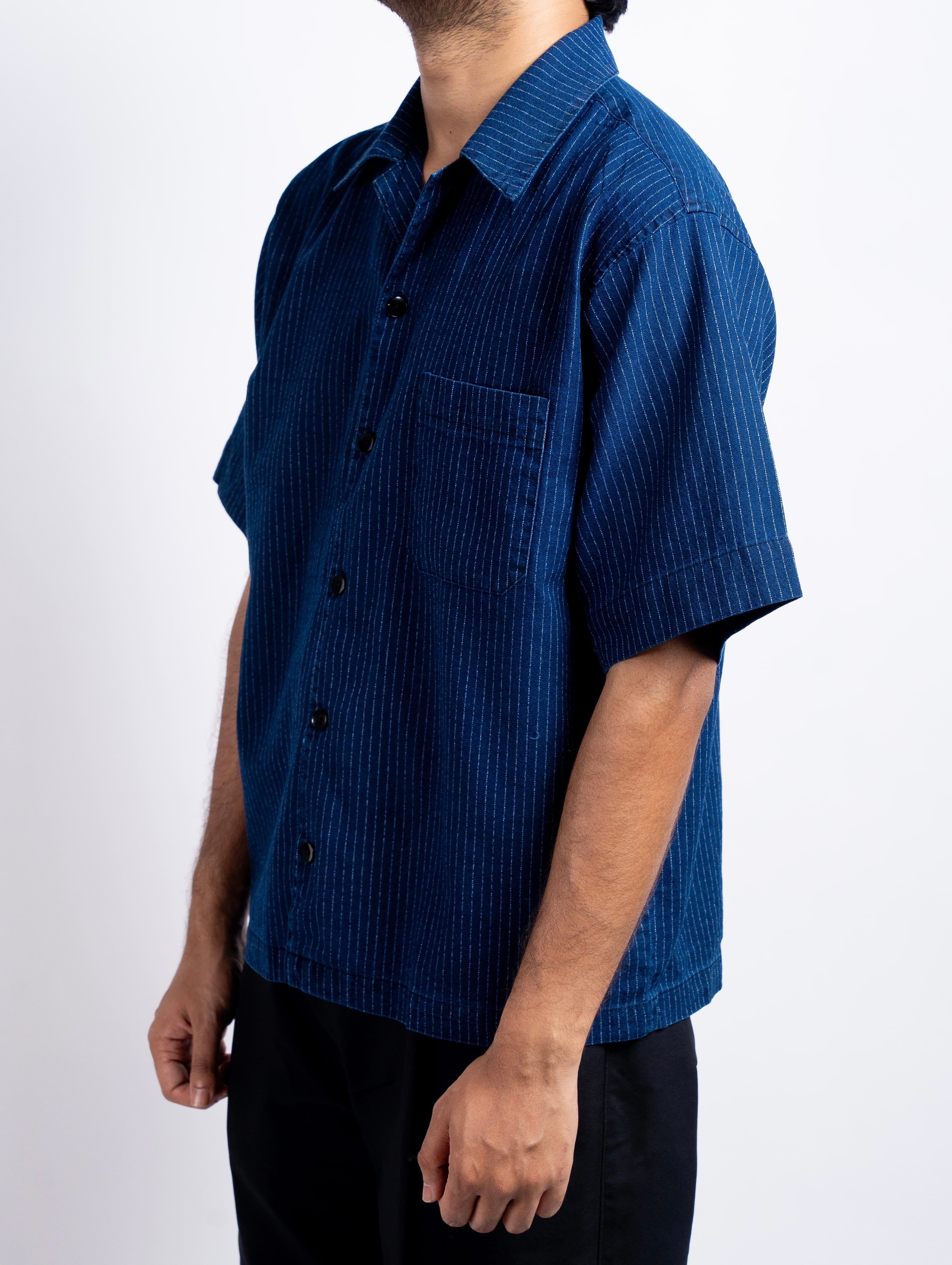 An all day work shirt in washed Indigo. Comfortable boxy cut provides for all day comfort with enough room to move around in.