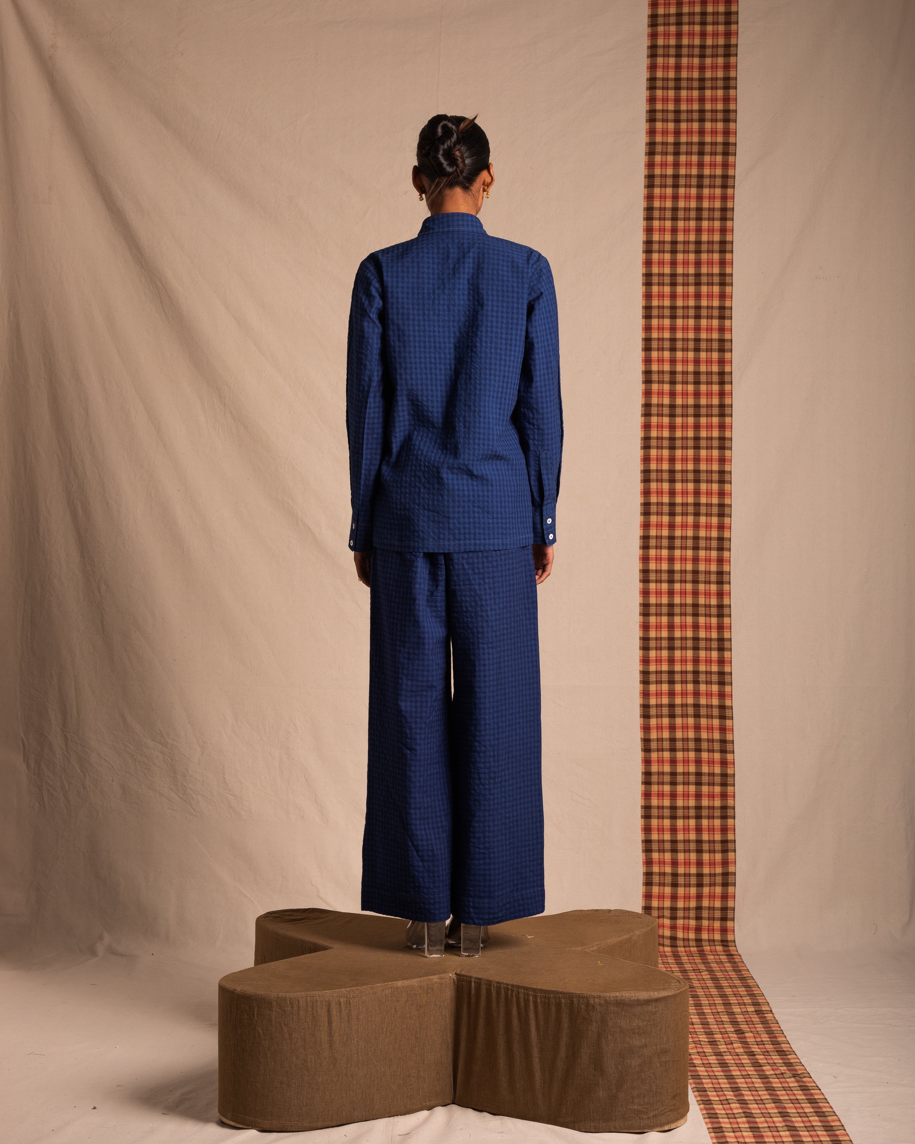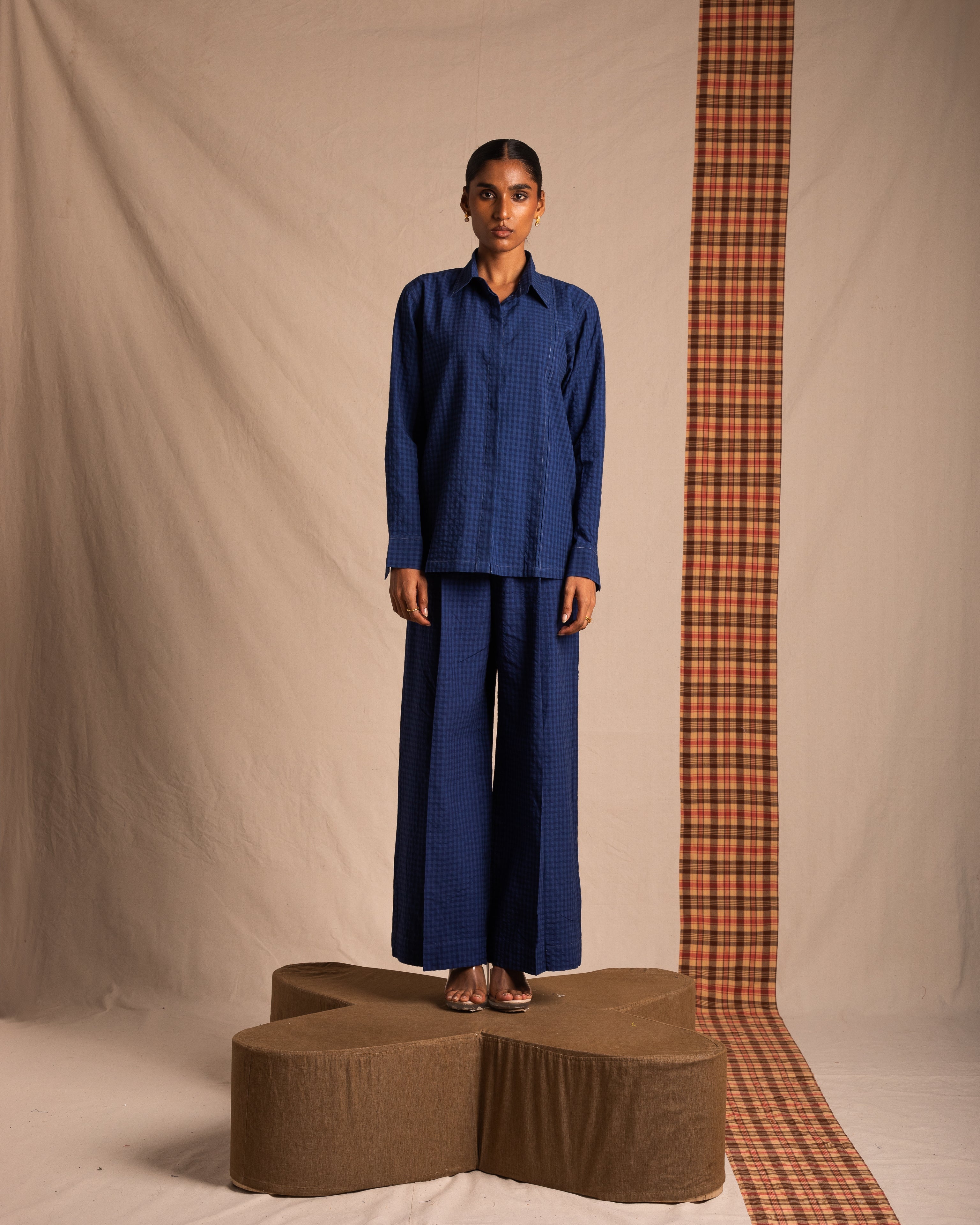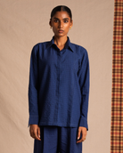 Indigo Niram: Relaxed button-down shirt with pleat detailing on one side