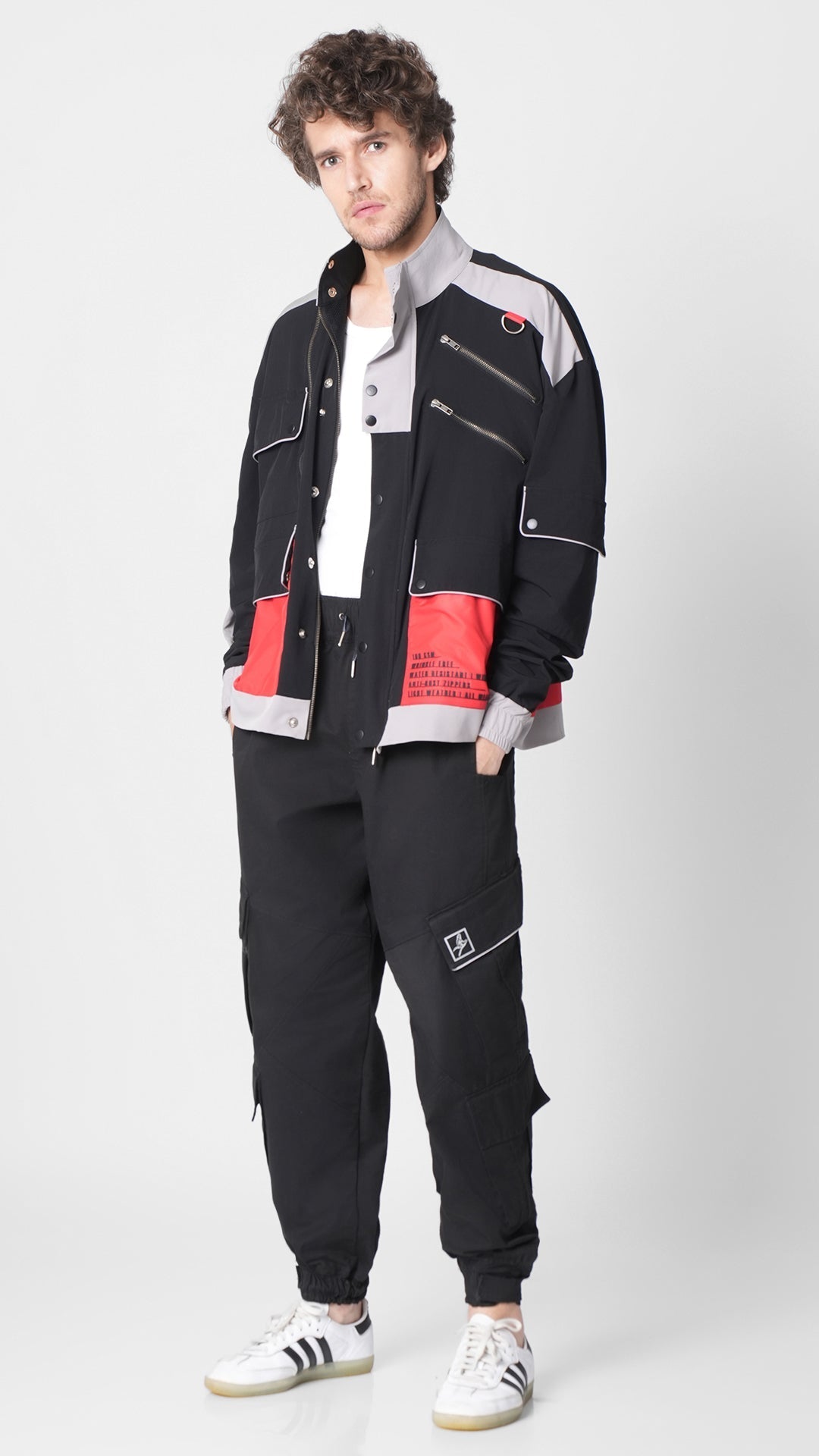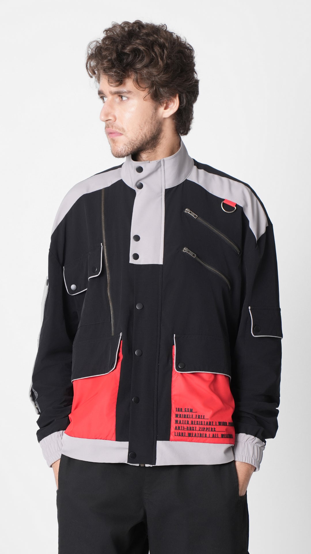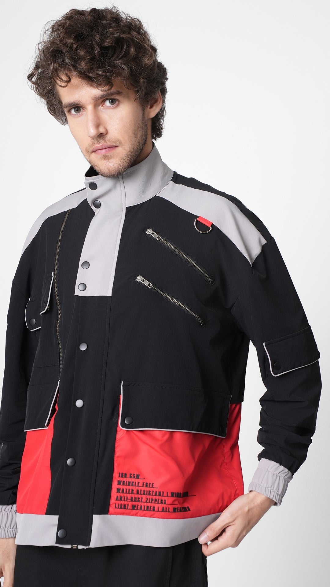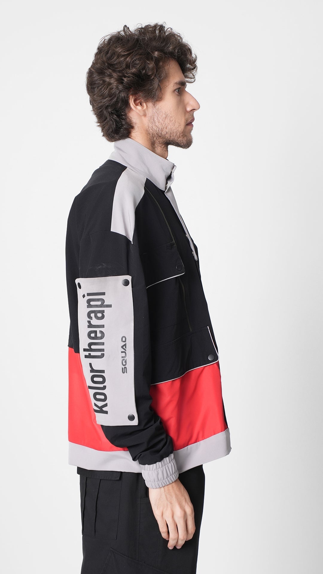 - Color blocked design with HD print detail on jacket bottoms and sleeve panel