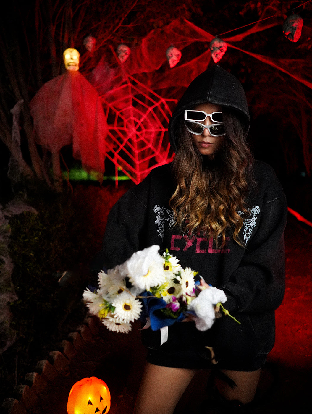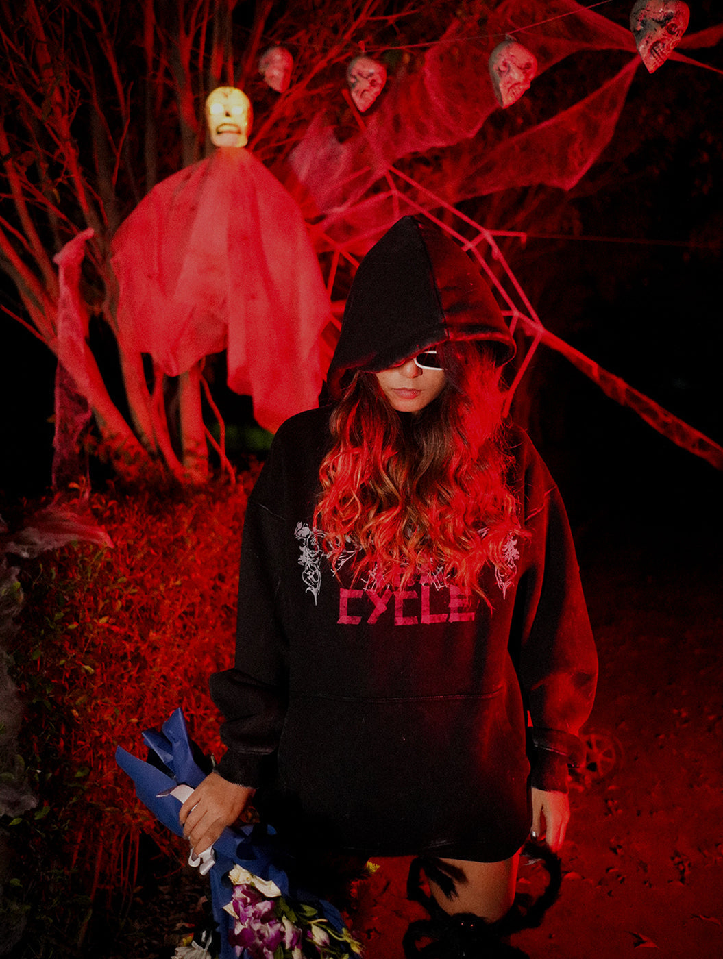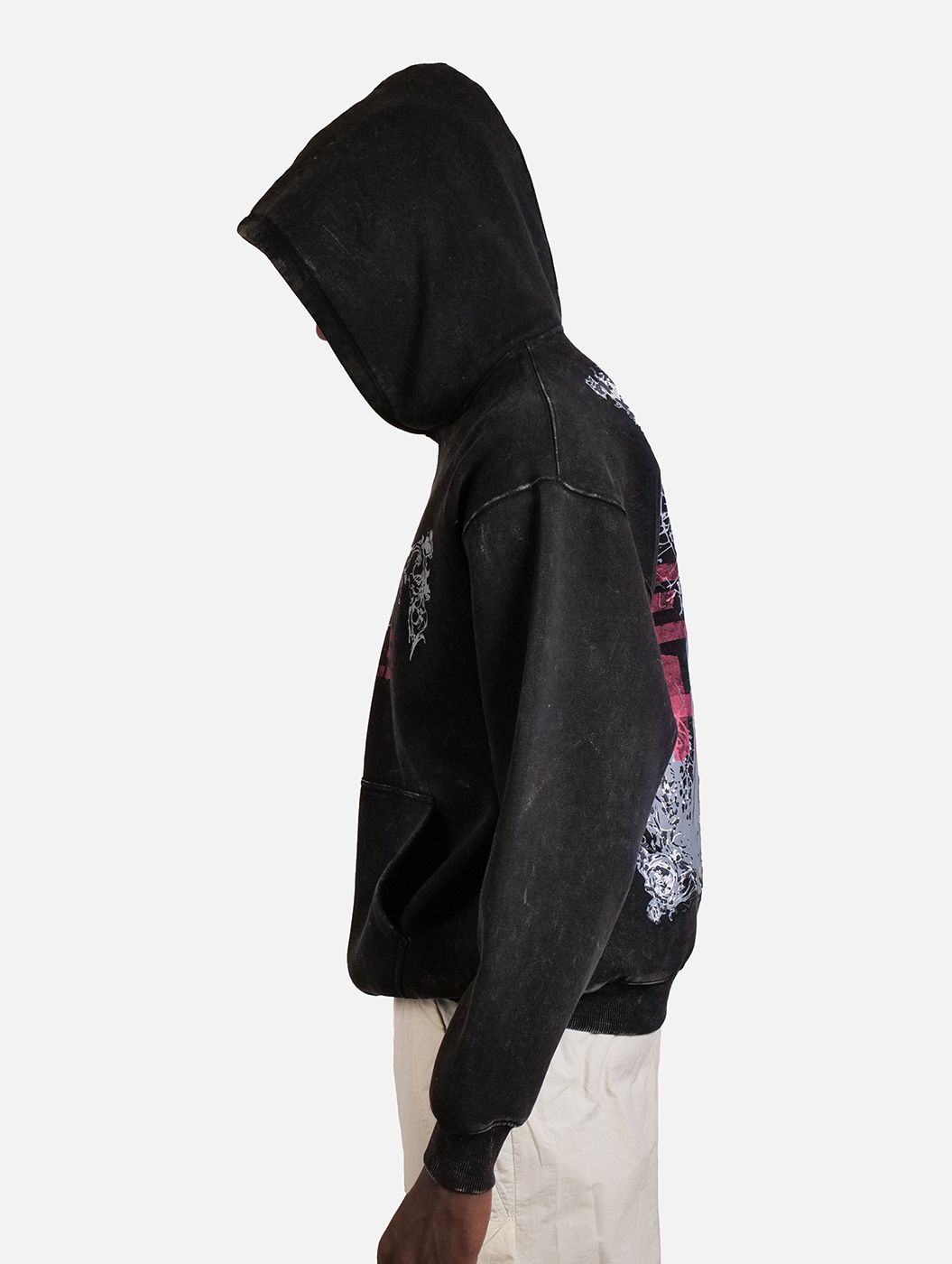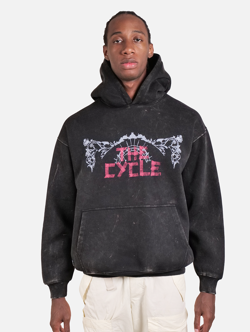 This oversized hoodie sweatshirt features a mystical life cycle design in a stunning puff screen print, complemented by a captivating sun fade wash. With a cozy hood, convenient pockets, and a relaxed fit, it's perfect for everything from clubbing to chilling at home or house parties with friends. Ideal for any occasion, it adds an element of thrill to your wardrobe.