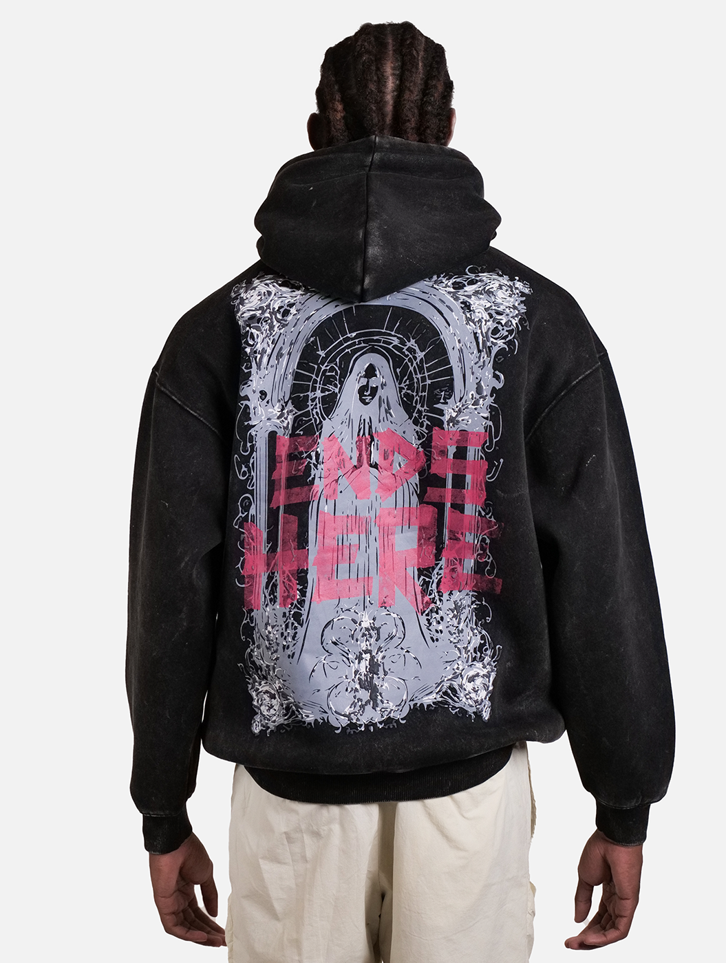 It Ends Here - Black Washed Drop Shoulder Oversized Hoodie