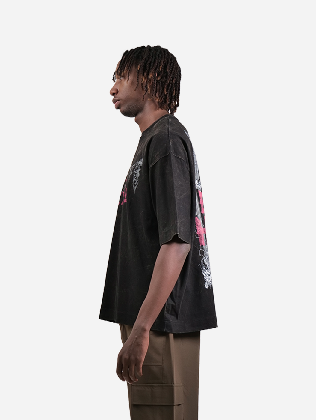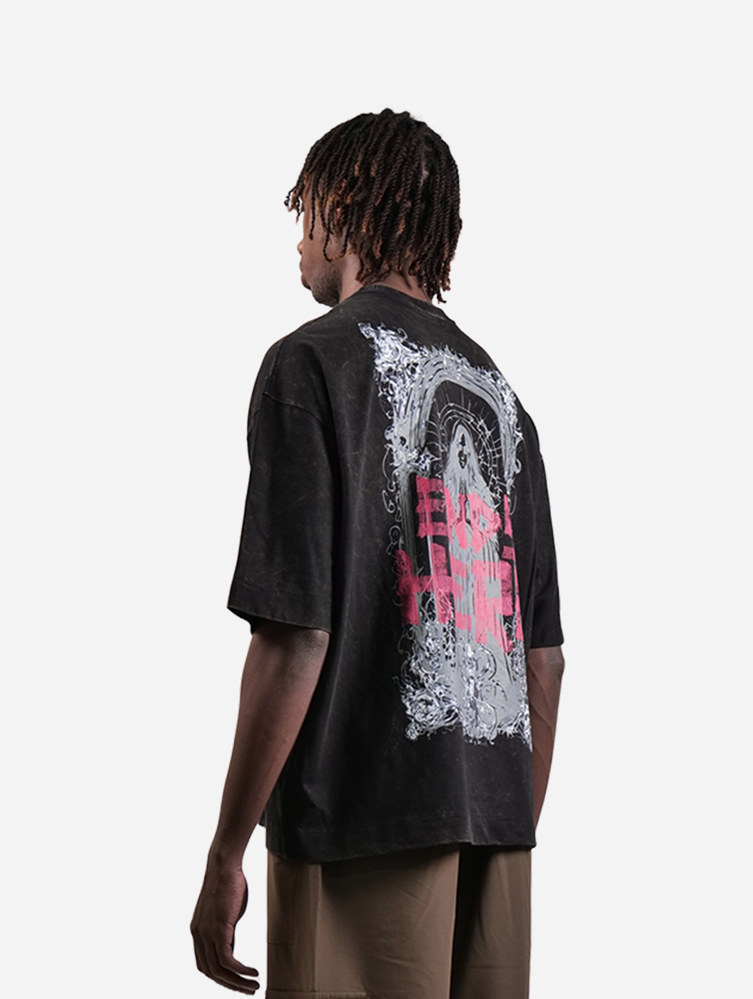 Featuring a unique stone-washed effect, this T-shirt boasts a rugged, edgy vibe that’s complemented by a vibrant, durable print on the back. The relaxed fit makes it perfect for casual outings, whether you’re pairing it with baggy pants or trousers. Unisex by design, "IT ENDS HERE" is the ultimate blend of comfort, durability, and bold aesthetics, ideal for those who embrace fashion with an attitude.