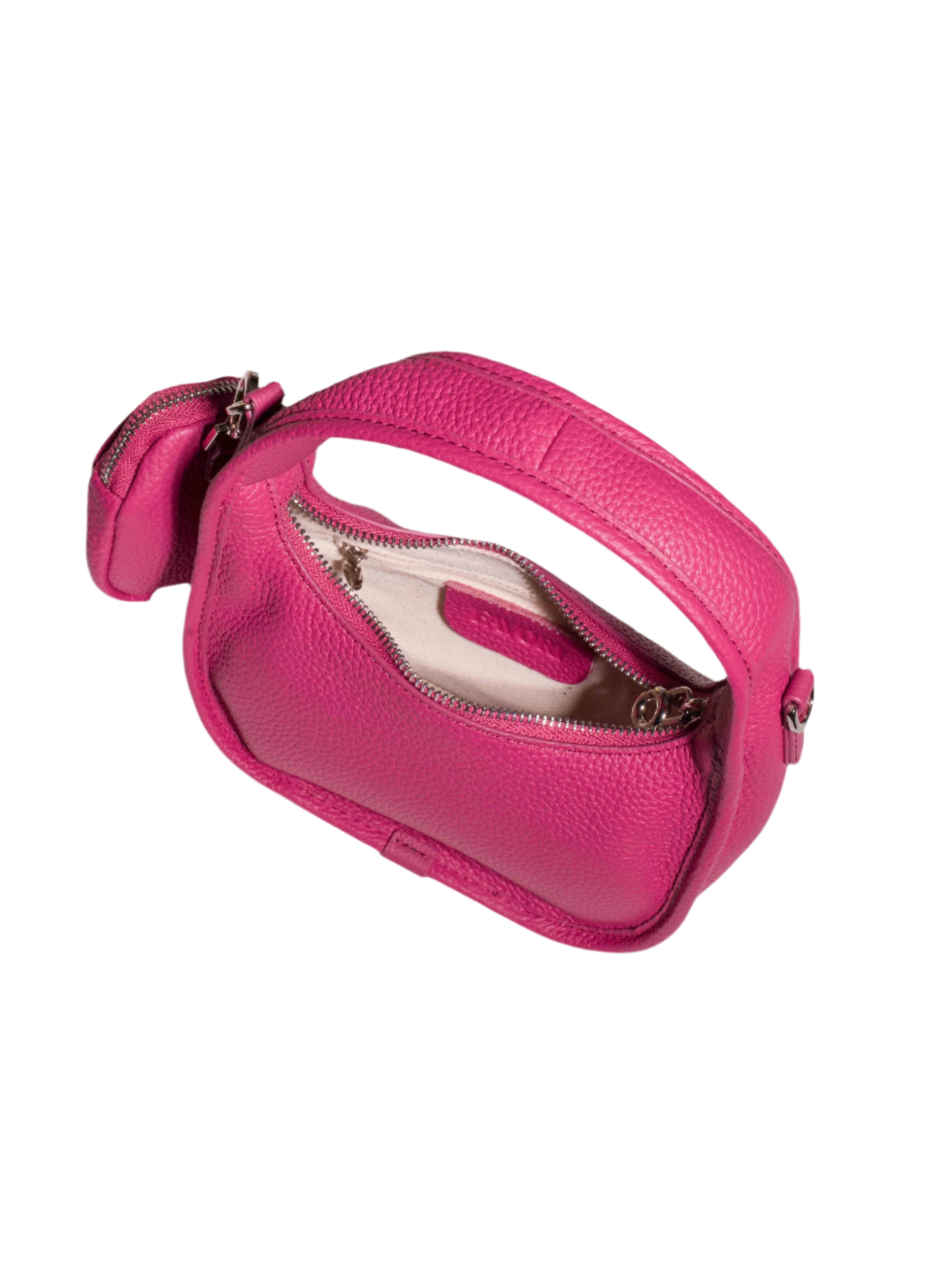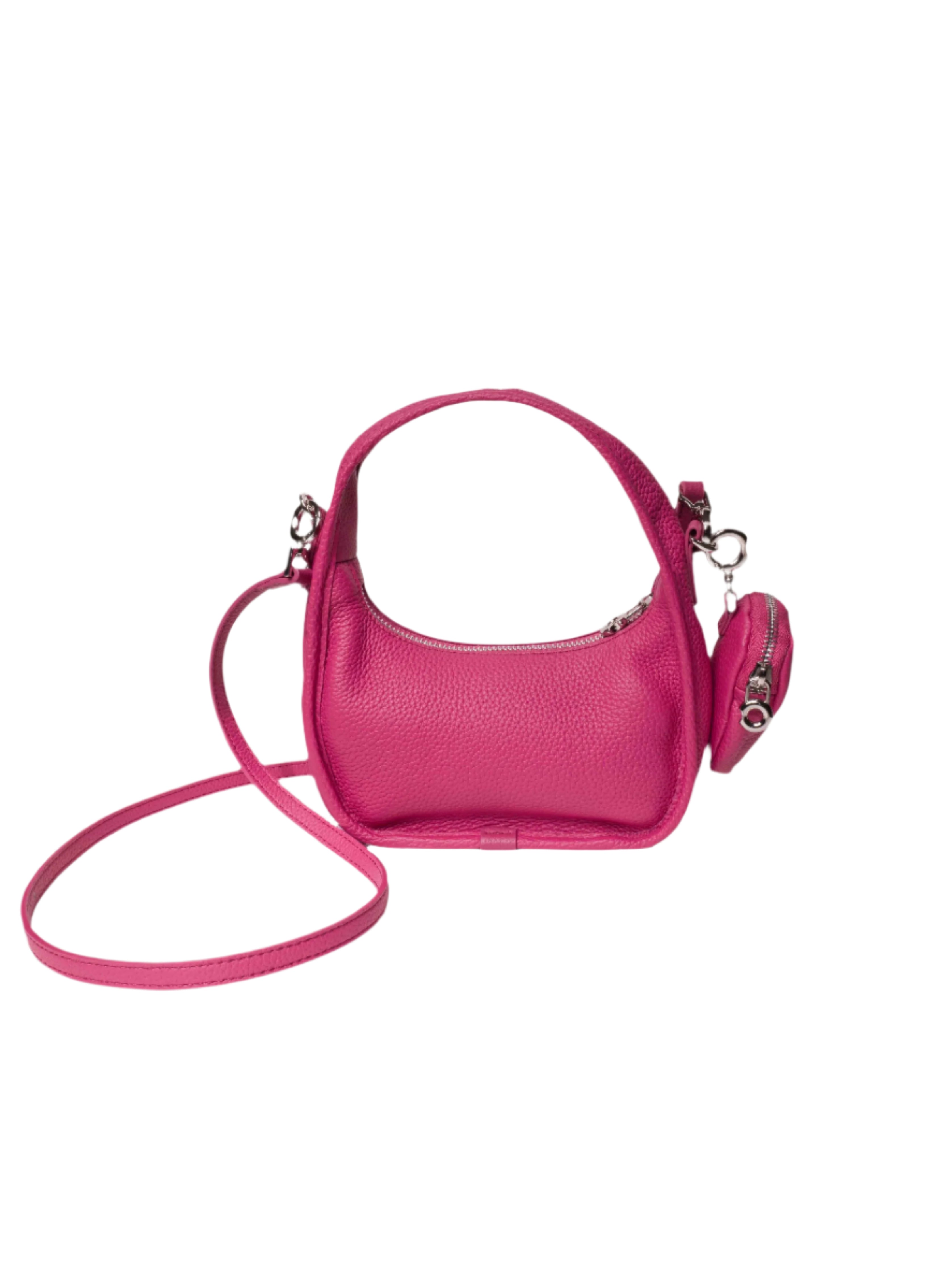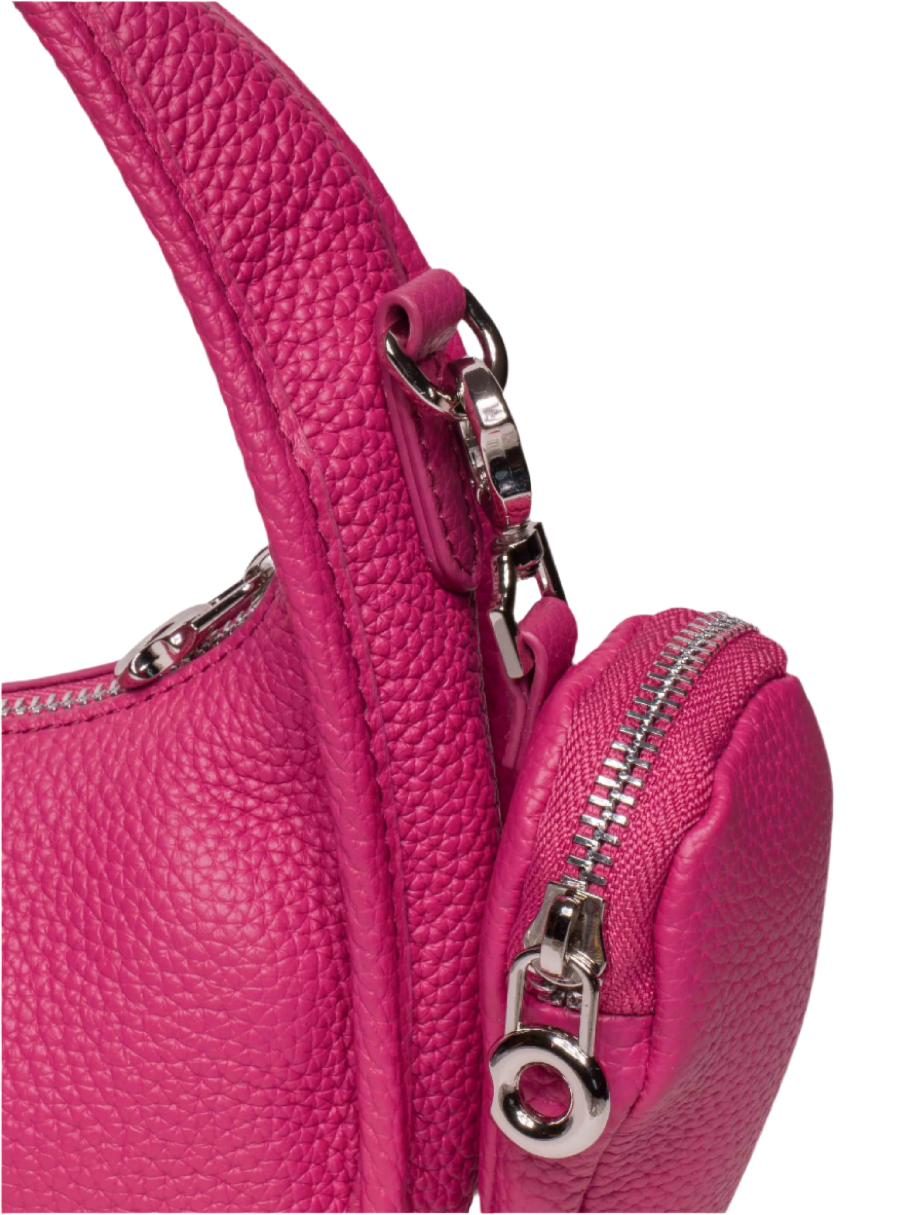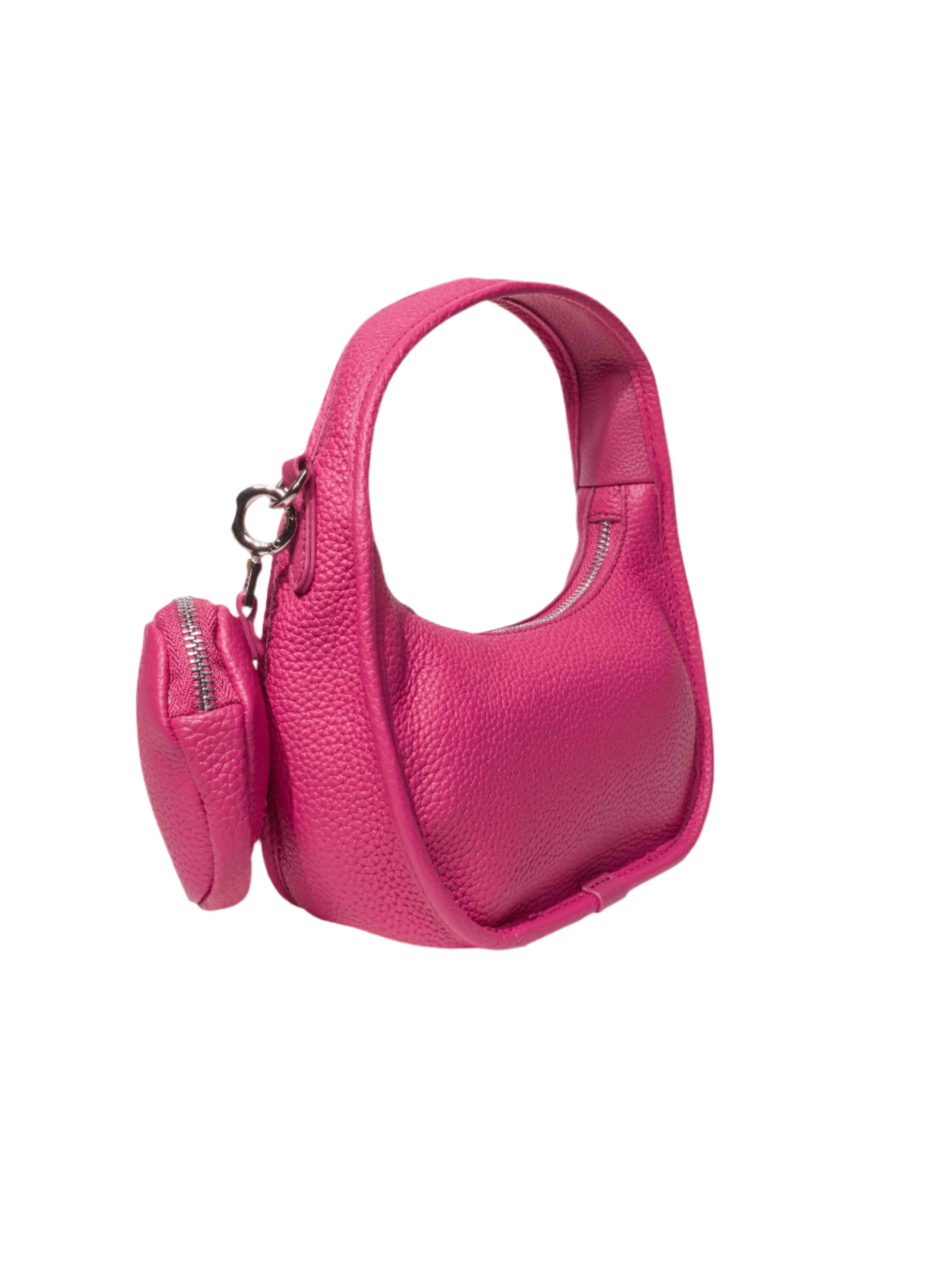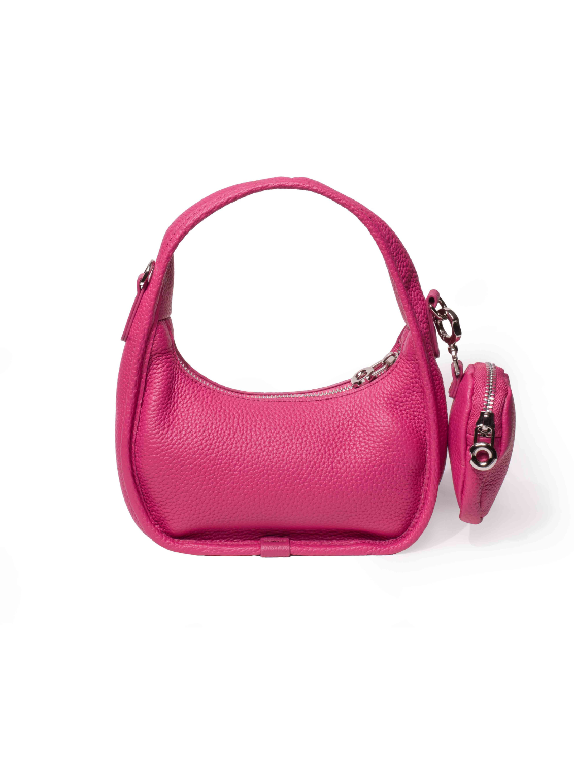 Jolie - Ladies Leather Hobo With Hanging Airpod Case | Fuchsia