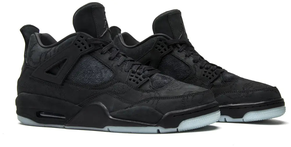 The Jordan 4 Retro Kaws Black blends premium craftsmanship with iconic design. Its rich black suede upper is complemented by unique Kaws detailing, providing an exclusive aesthetic that appeals to collectors and sneaker enthusiasts alike. With enhanced cushioning and durable rubber outsoles, it delivers comfort and grip for both casual wear and light activity. This model stands out as a sophisticated fusion of art and performance, making it a must-have for serious Jordan fans.