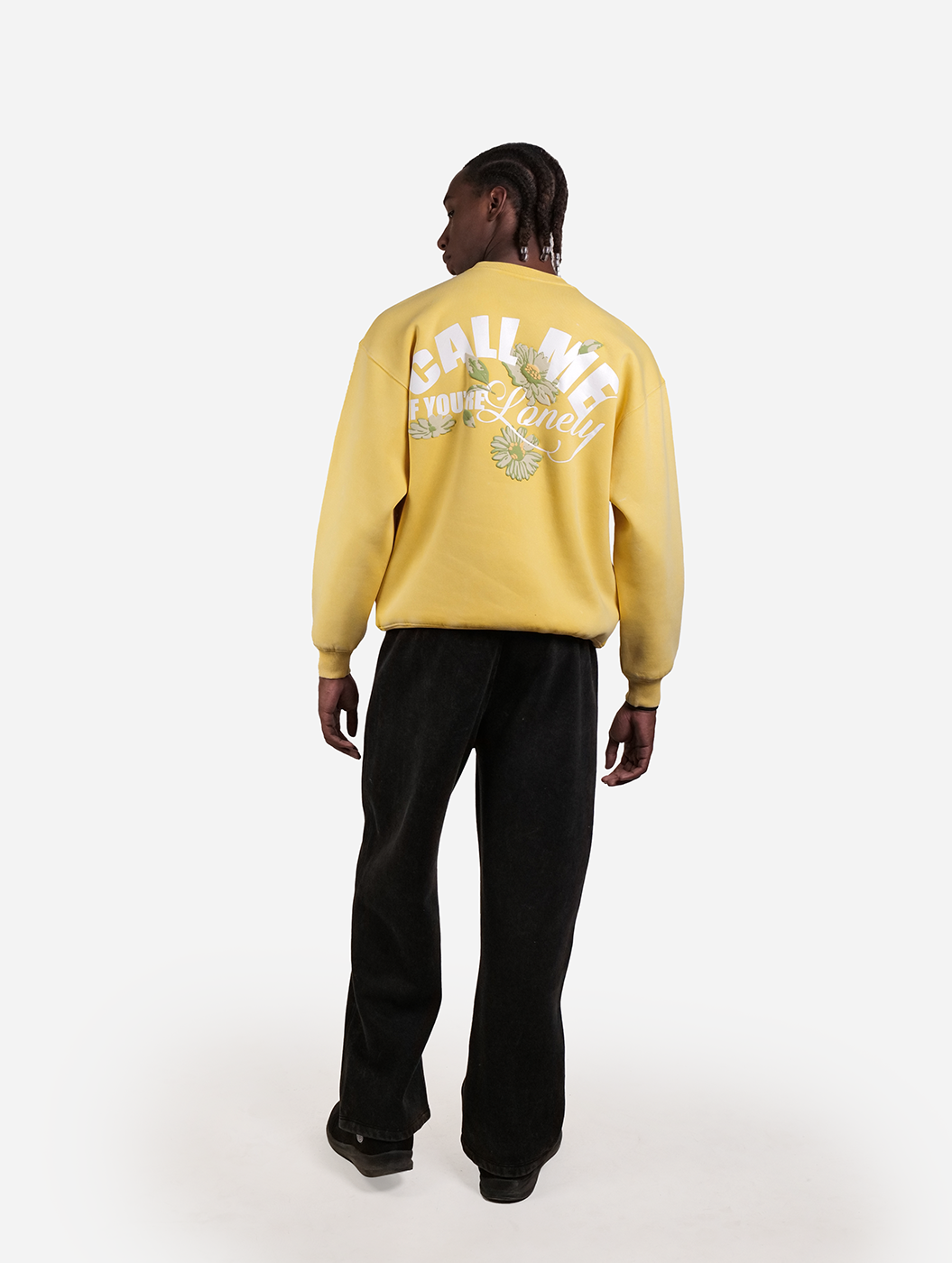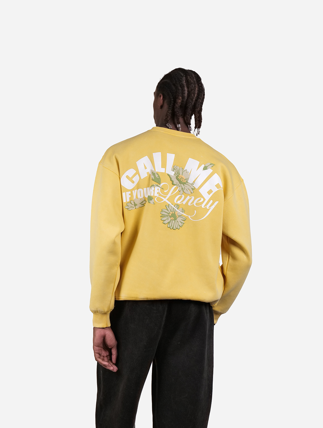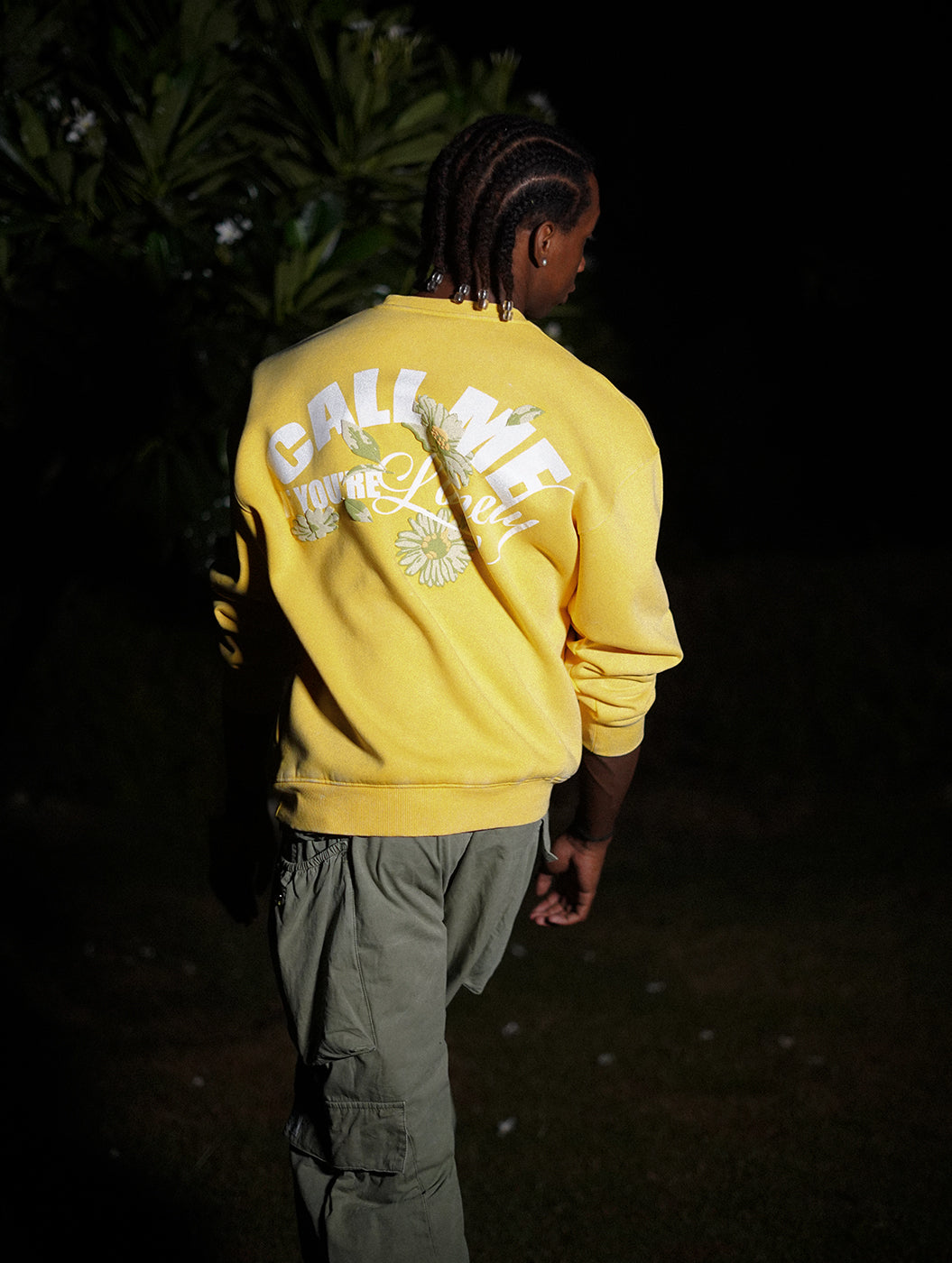 Just Call Me - Yellow Faded Wash Graphic Drop Shoulder Oversized Sweatshirt