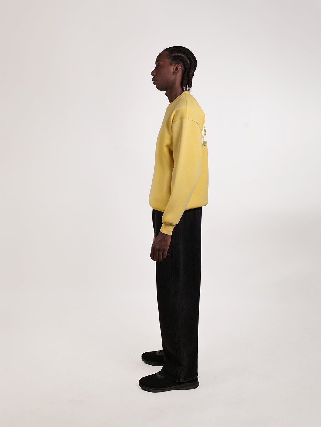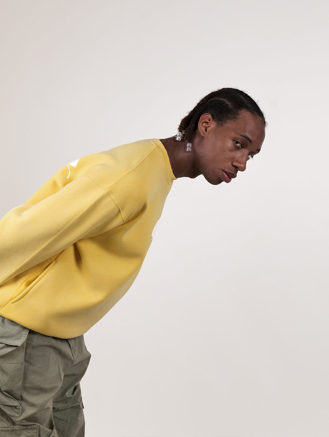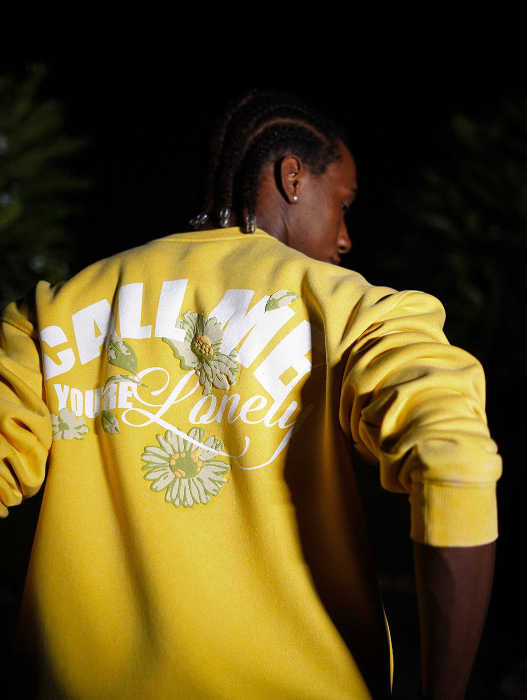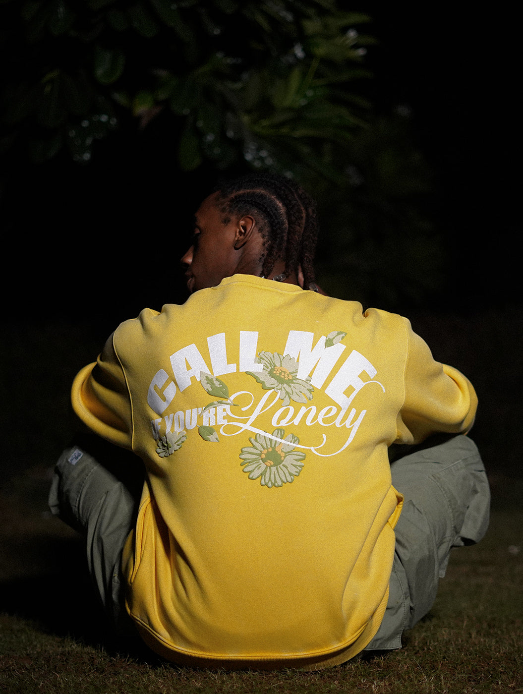 Just Call Me - Yellow Faded Wash Graphic Drop Shoulder Oversized Sweatshirt