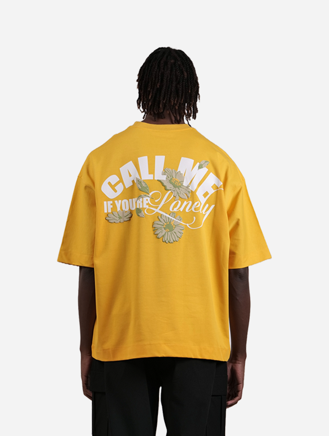 Just Call Me - Yellow Graphic Drop Shoulder Unisex Oversized T-Shirt