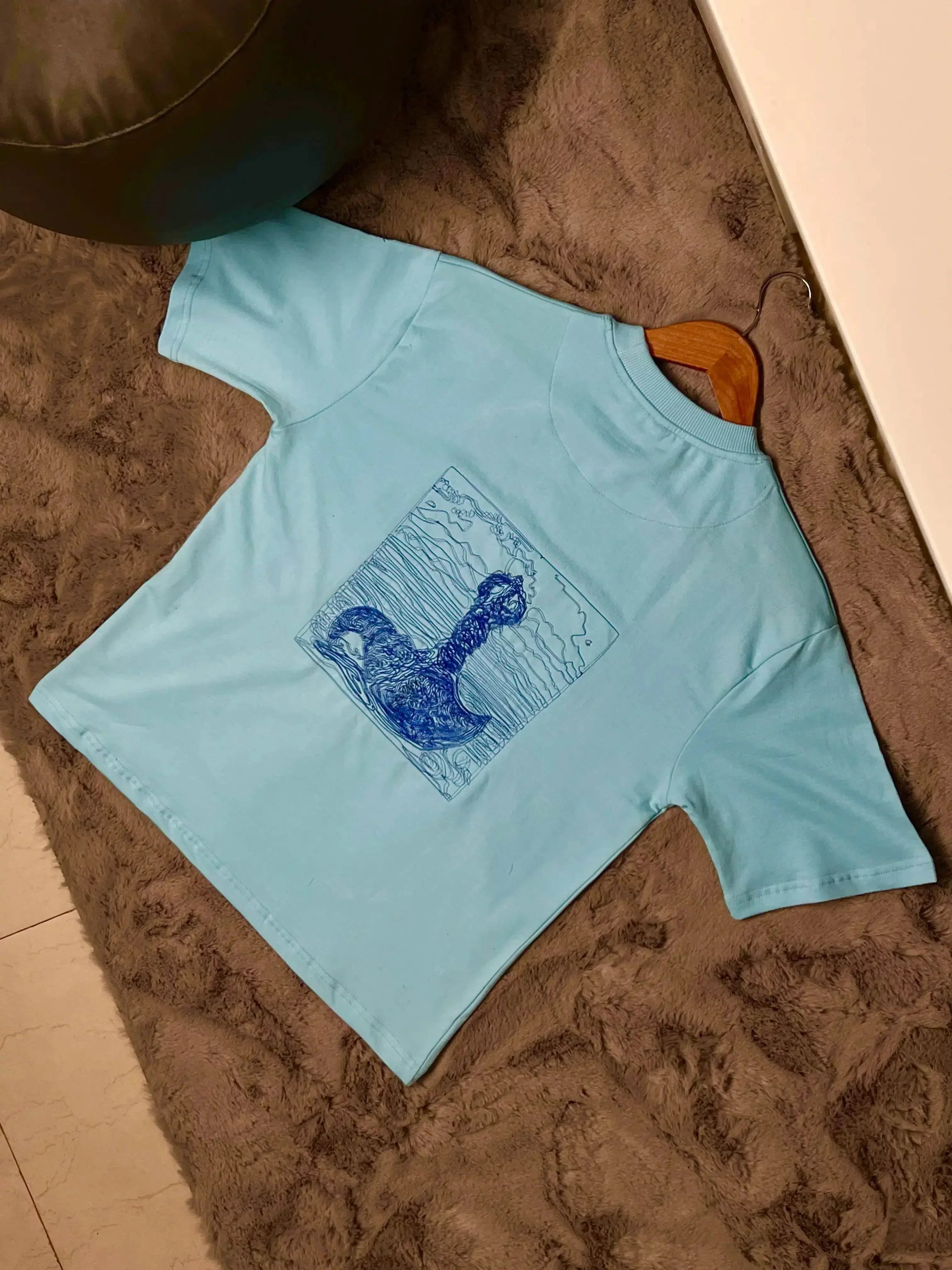 The Kartika knife that is embroidered at the back of the tshirt is a very important part of the buddhist culture that signifies the seperation of material and worldly bonds from your soul.