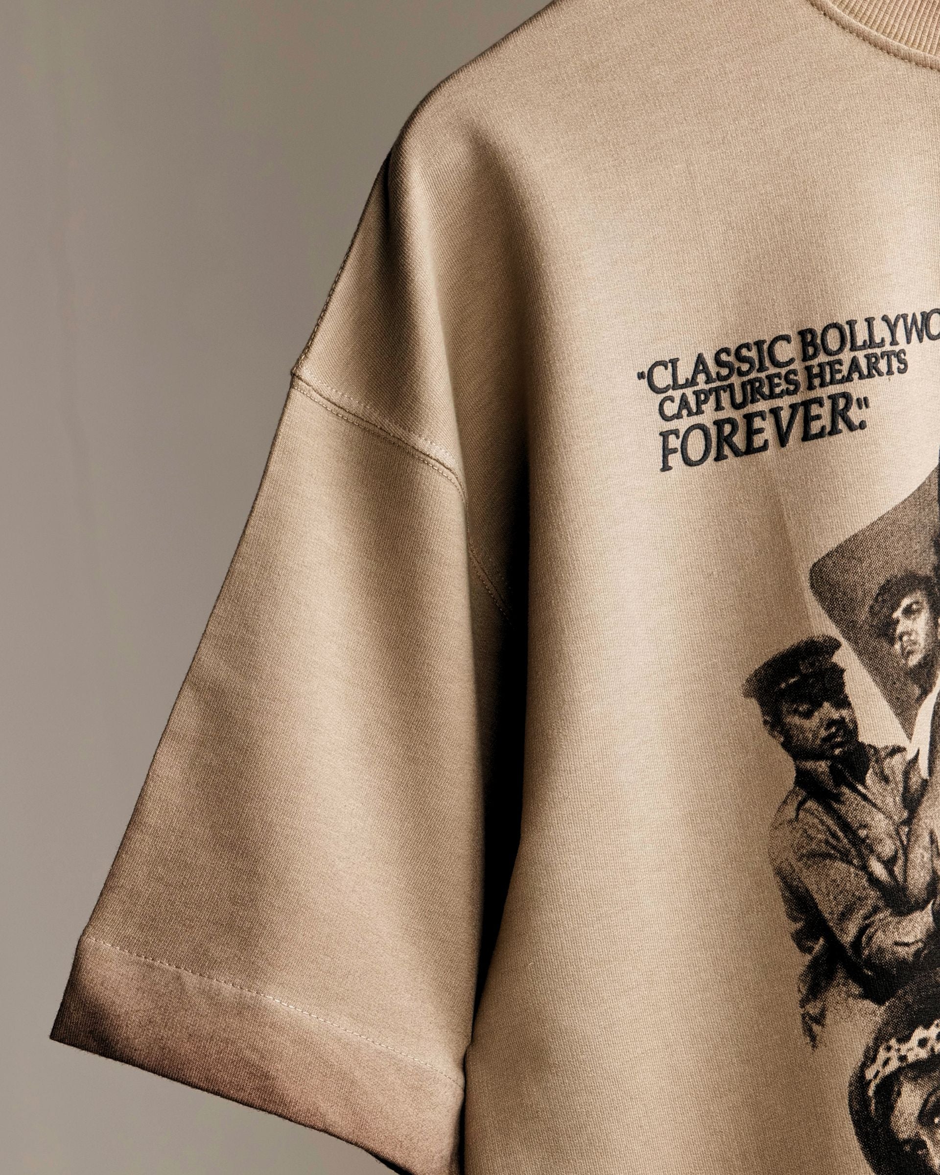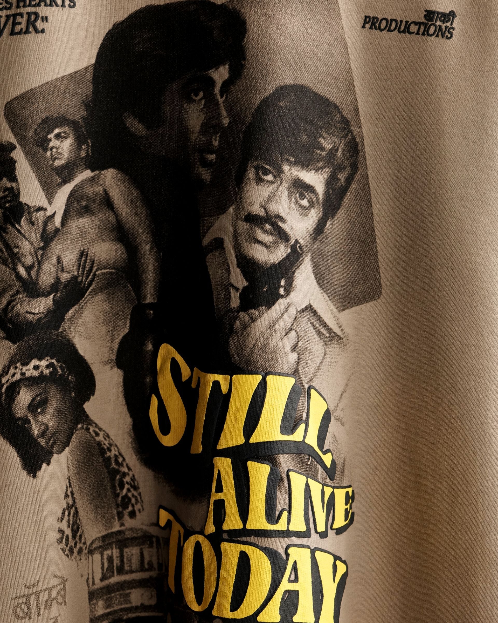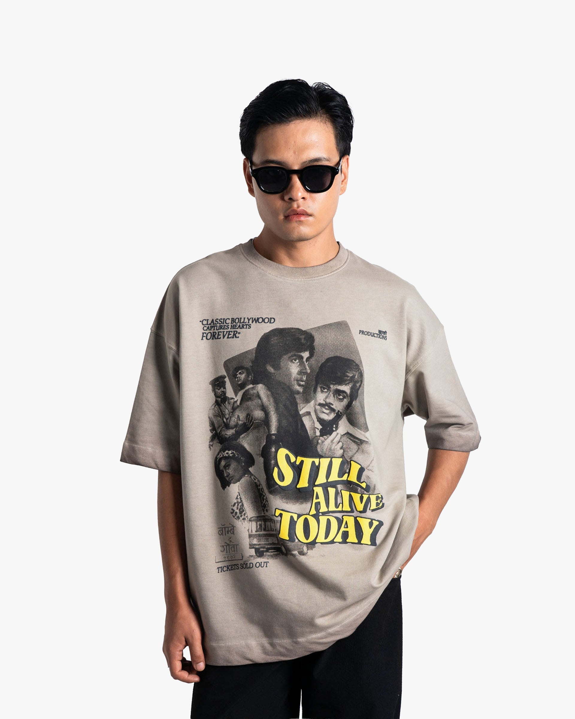 Celebrate the golden age of cinema with the Khaaki Productions Limited Edition t-shirt—an exclusive oversized unisex tee crafted from 250 GSM Cotton Spandex Terry with a pigment-washed finish for that perfect vintage, lived-in look. Paying homage to classic Bollywood cinema, the design showcases legendary film stars in a retro movie-poster style print with bold typography—making it a true collector’s piece for fans of retro fashion and graphic streetwear.