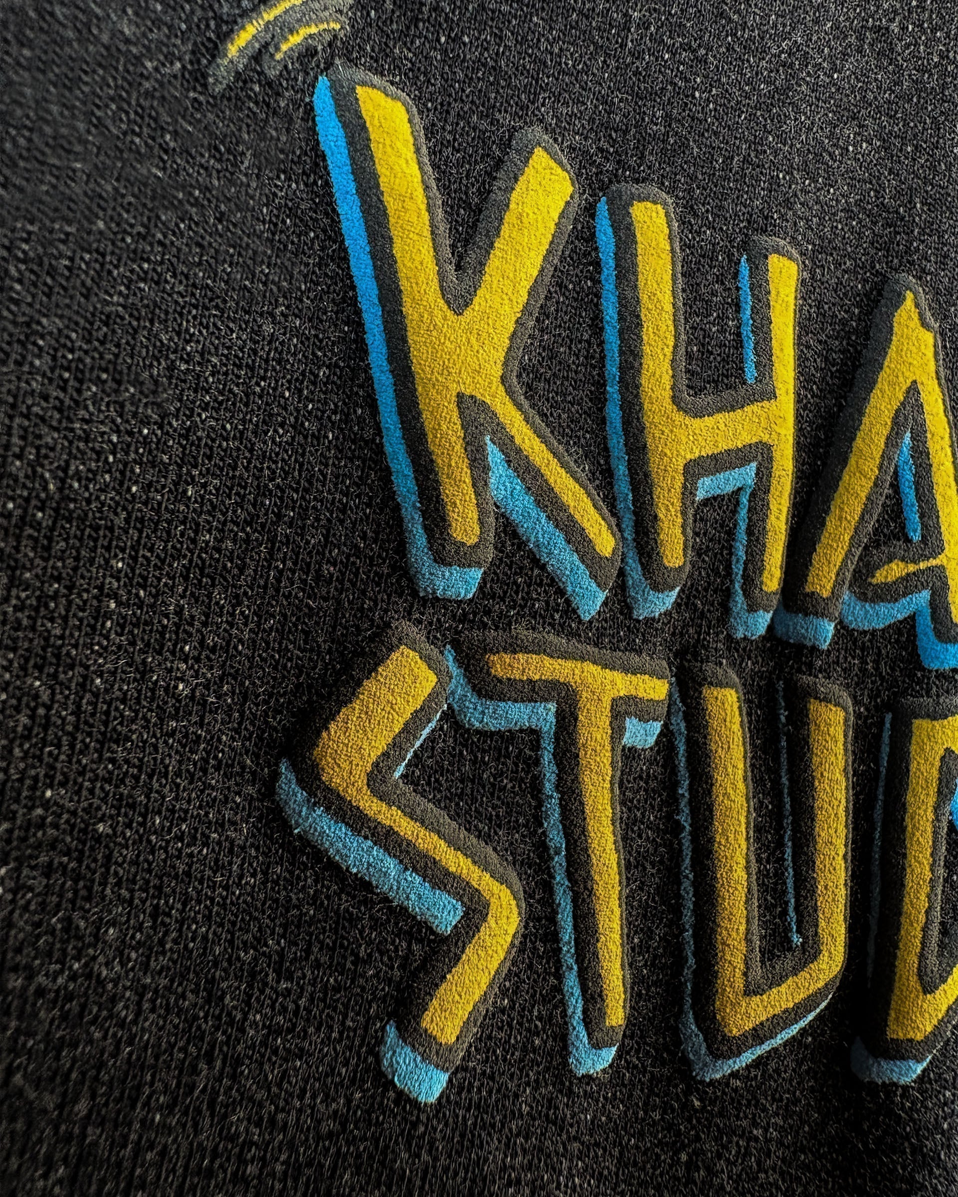 The Khaaki Studios Oversized T-Shirt is crafted from 100% Cotton Terry Looper (250 GSM), it offers a soft yet structured feel. The stone-washed finish delivers a worn-in, vintage aesthetic that resonates with both retro and Y2K-inspired styles.