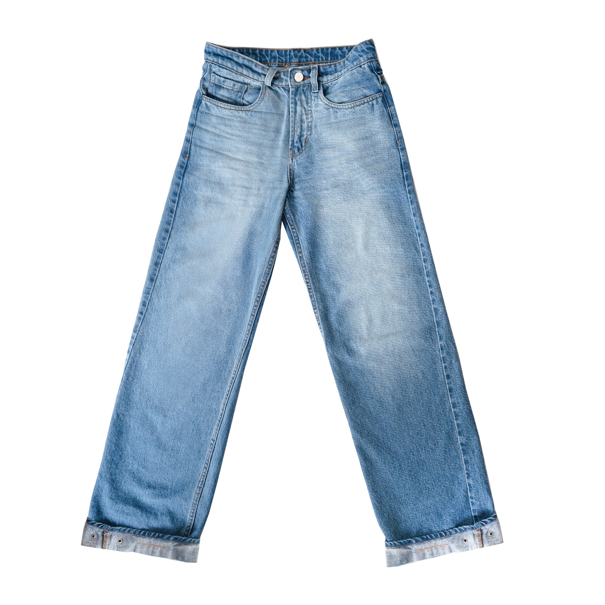 Relaxed-fit trousers with turn-up hems inspired by sneakers, complete with eyelets that echo classic canvas shoes. A blend of soft structure and conceptual detail, where