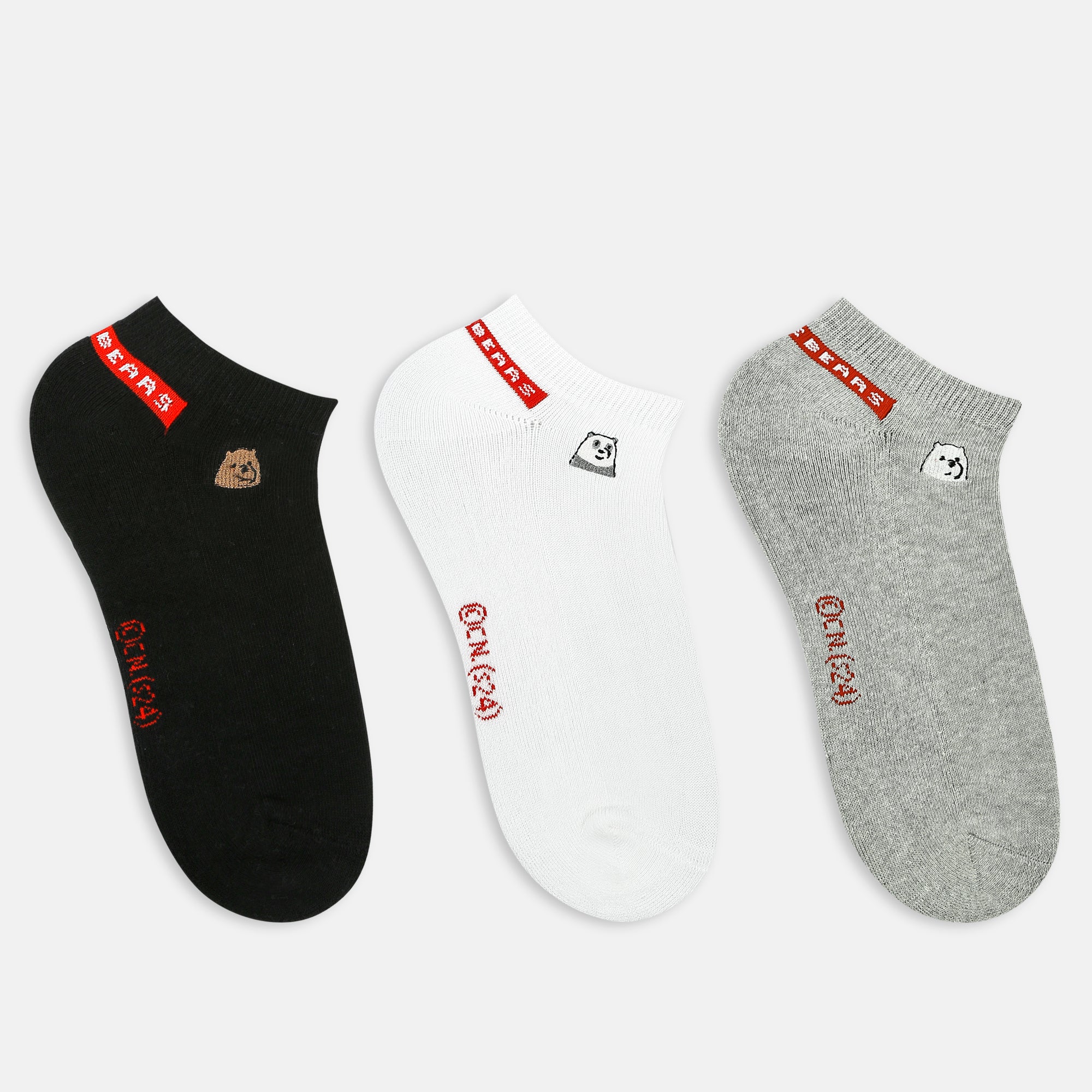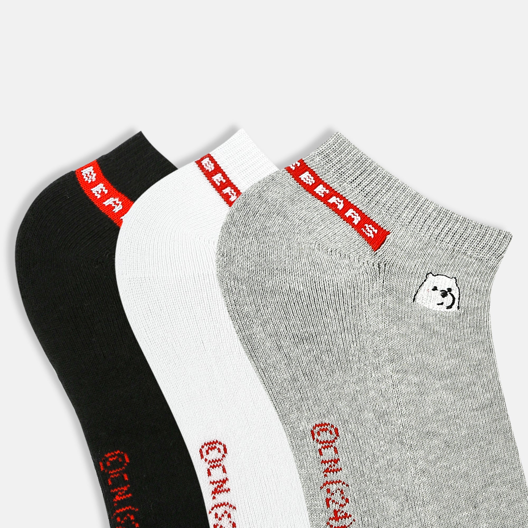 Made using a combination of combed cotton, nylon, spandex and elastic, these ankle socks ensure utmost comfort, stretchability and grip. The minimal design of the bears makes these socks easy to style for daily wear.