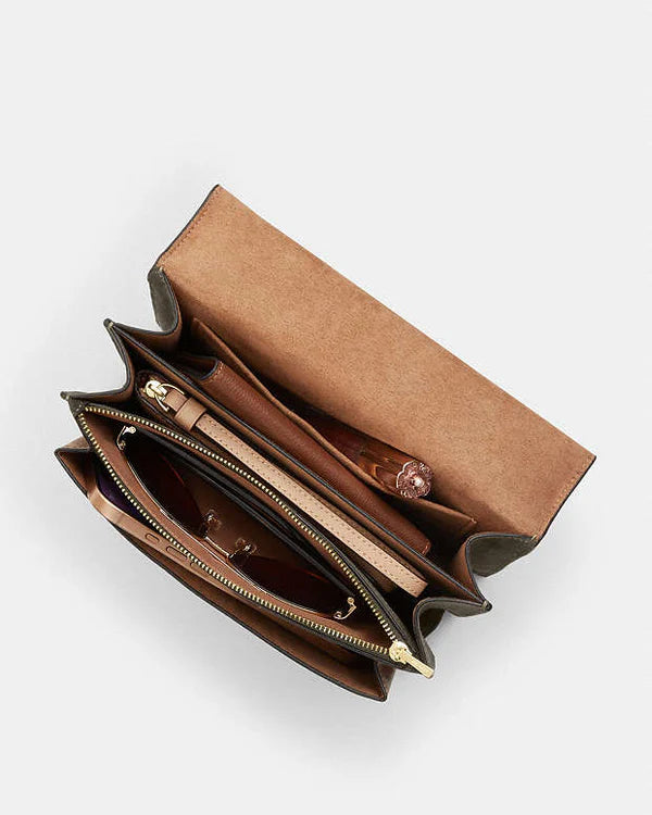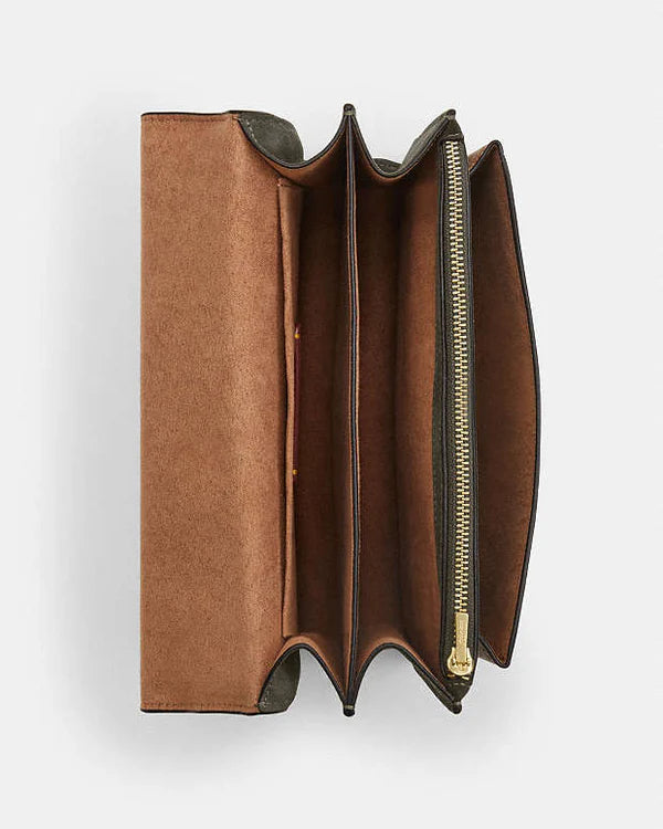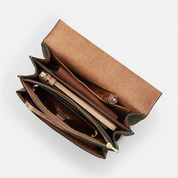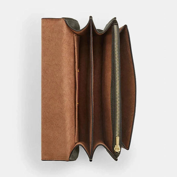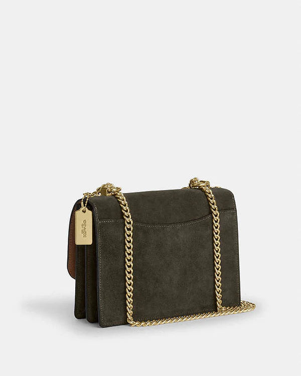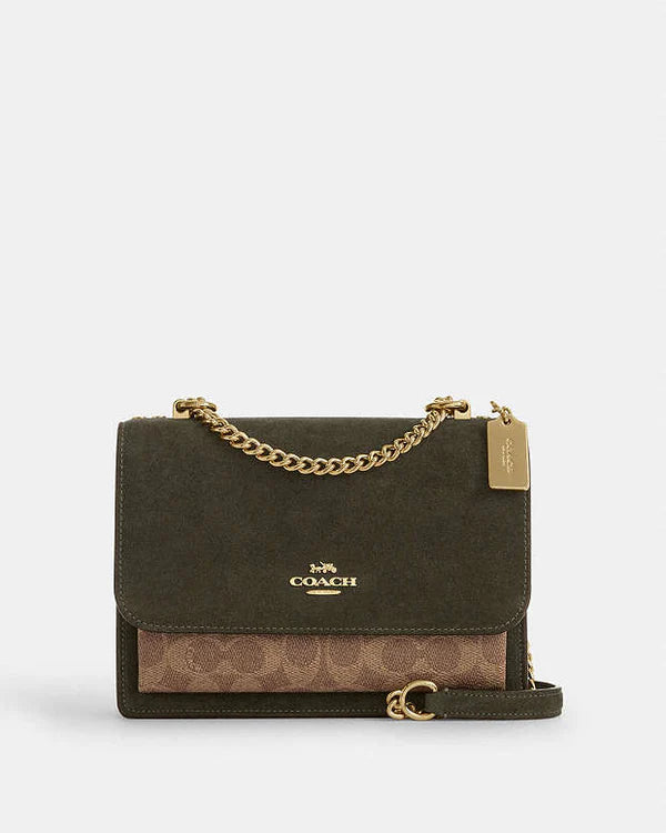 The Coach Klare Crossbody Bag combines signature canvas with suede in an Army Green and Tan colorway, offering a refined yet casual aesthetic. Its compact design includes an adjustable strap for hands-free convenience and organized storage for daily essentials. With quality materials and expert craftsmanship, this bag delivers both style and practicality for versatile wear.