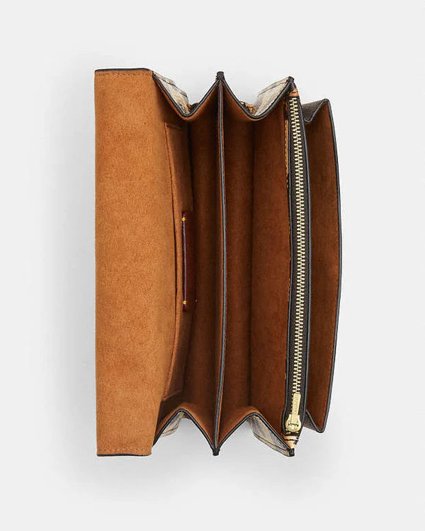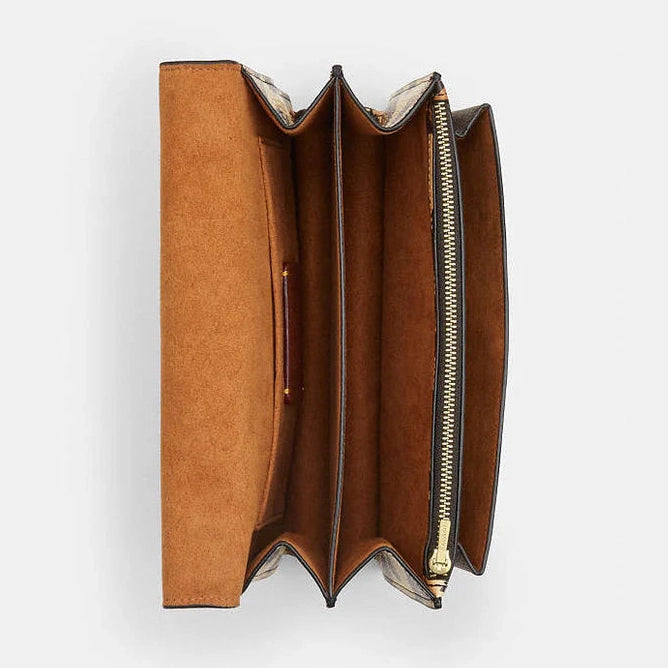 The Coach Klare Crossbody Bag features a striking leopard print combined with signature canvas and pebbled leather in a Walnut Multi palette. Designed for functionality and style, this compact bag includes an adjustable strap and organized interior, making it ideal for carrying essentials with a bold, sophisticated edge. Expertly crafted, it adds a distinctive statement to any outfit.