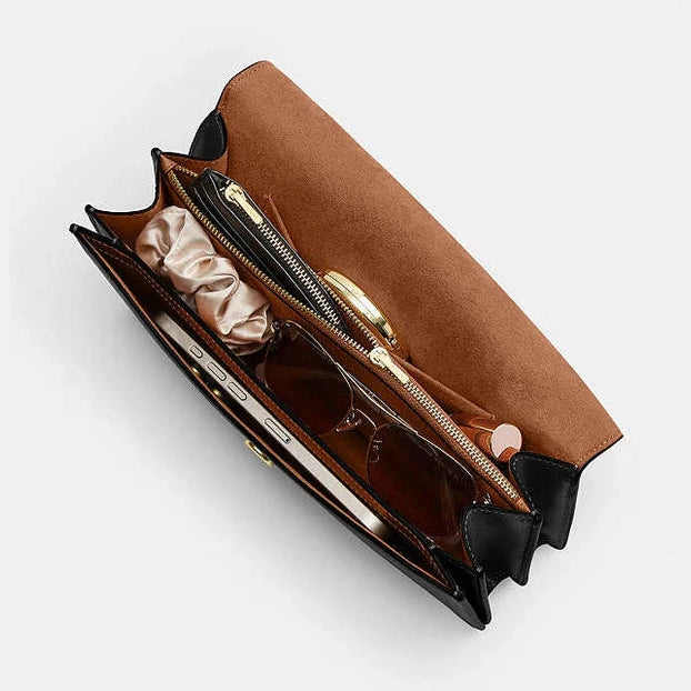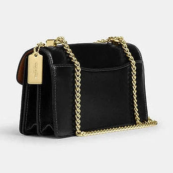 Crafted from premium calf leather, the Coach Klare Envelope Crossbody Bag in gold and black blends sophisticated style with everyday practicality. Its sleek envelope design offers a refined silhouette, while the adjustable crossbody strap ensures comfortable wear. Ideal for those who appreciate timeless luxury, this bag provides secure storage for essentials with easy access, making it a versatile accessory for both day and evening occasions.